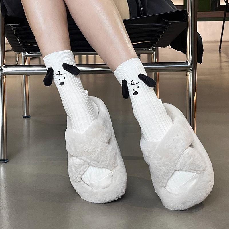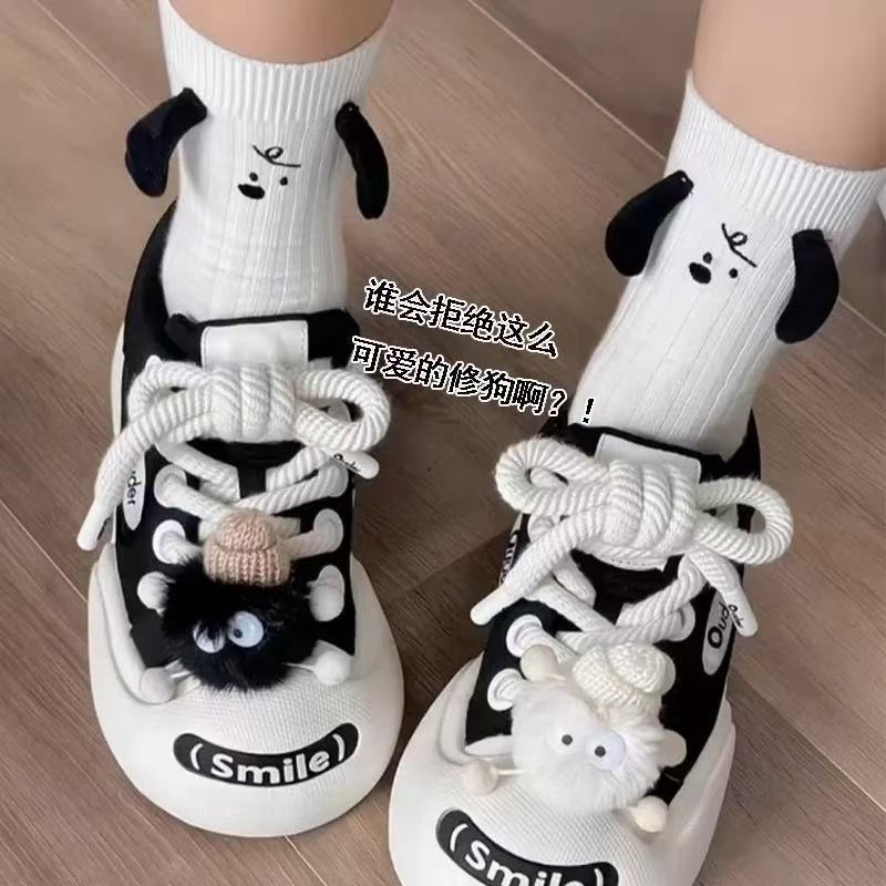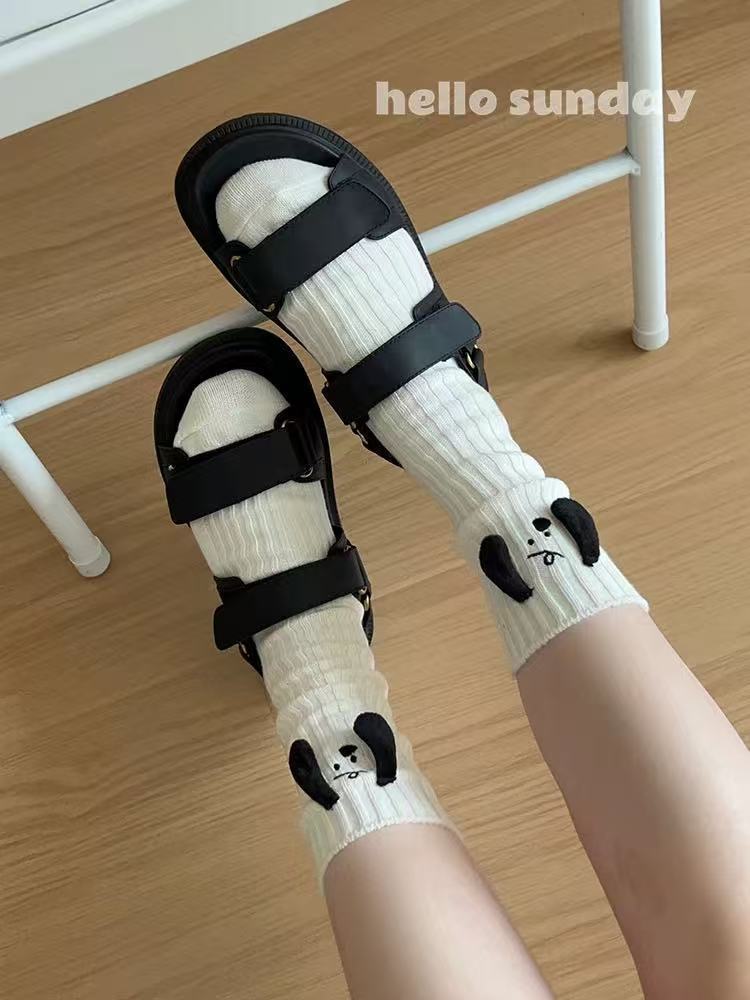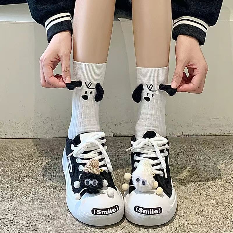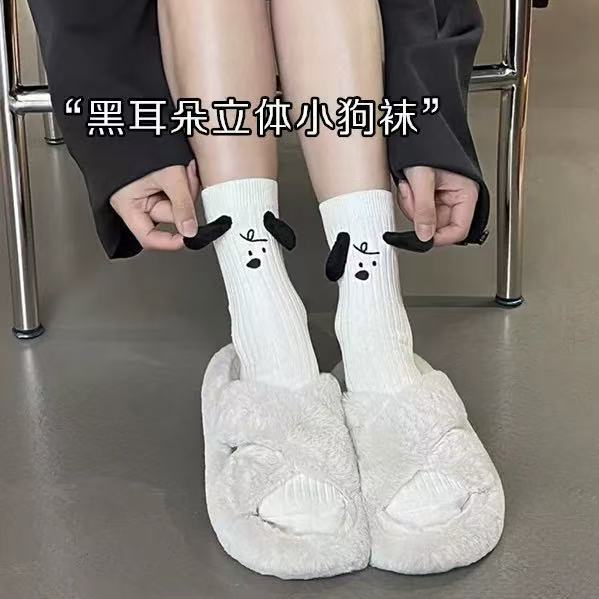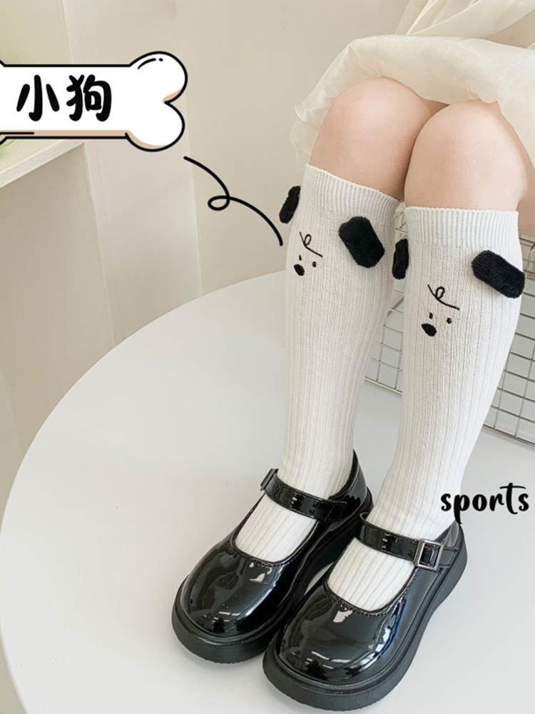 검은 귀 강아지 종아리 중간 길이 양말 세로 줄무늬 다용도 양말 여성용 입체 인형 양말 여성용 봄 여름 일본식