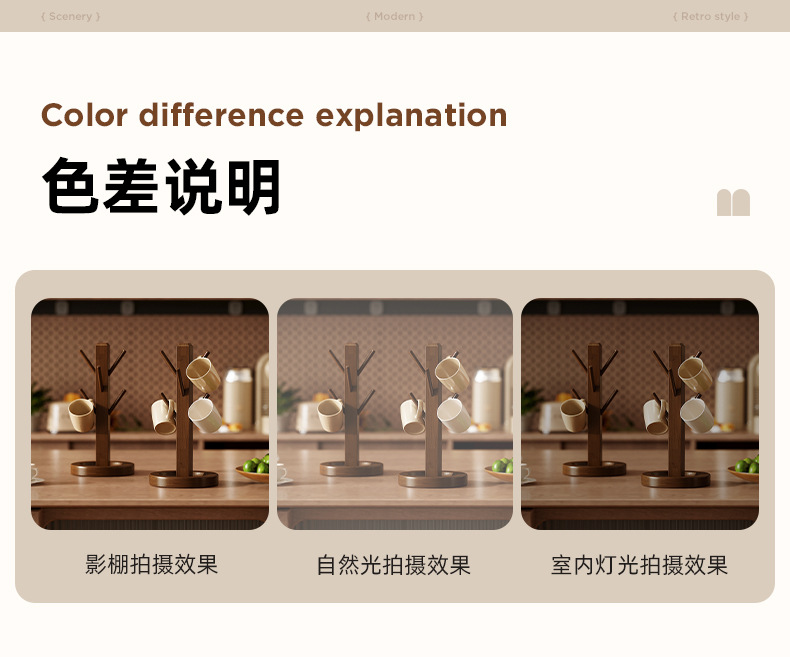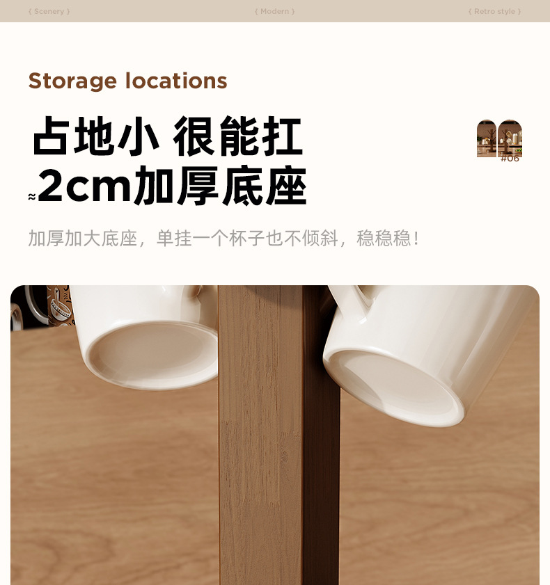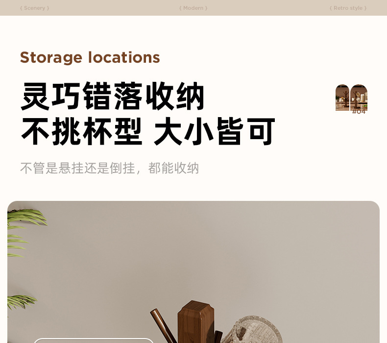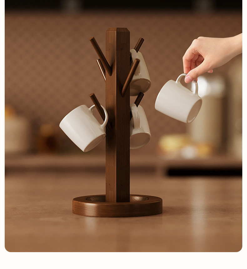 단단한 나무 컵 보관함 데스크탑 거꾸로 된 배수구 티 컵 홀더 커피 컵 보관함 키 보관 장식품스토어 가기
