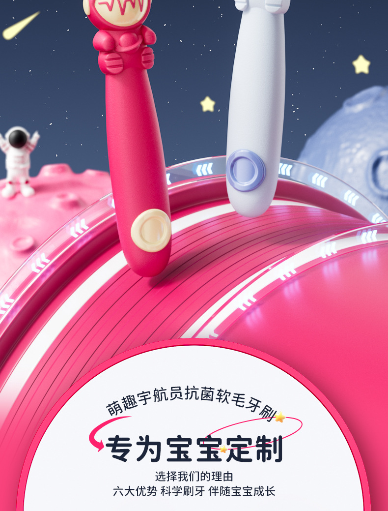 C-엔드 폭발 우주 비행사 어린이 칫솔 6-12 세 부드러운 머리 사랑스러운 우주 비행사 실버 이온 항균 칫솔 어린이스토어 가기