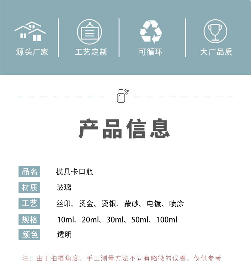 재고 있음 10ml 투명 유리 플라스크 20ml 총검 성형 병 30ml 에센스 리필 병 공장 직접 판매스토어 가기