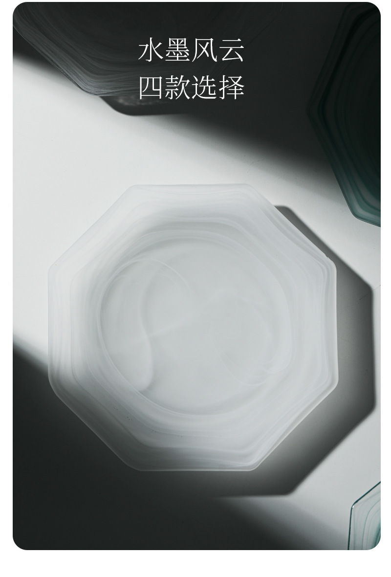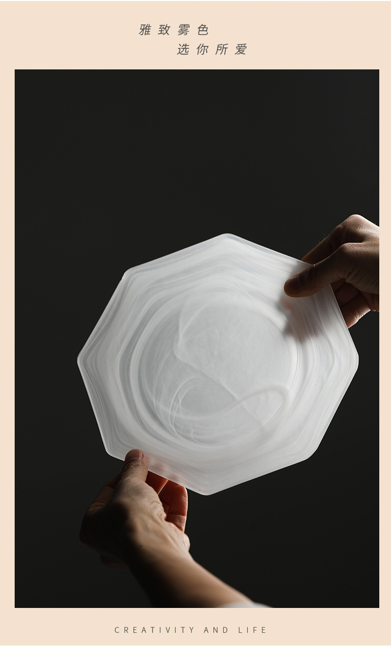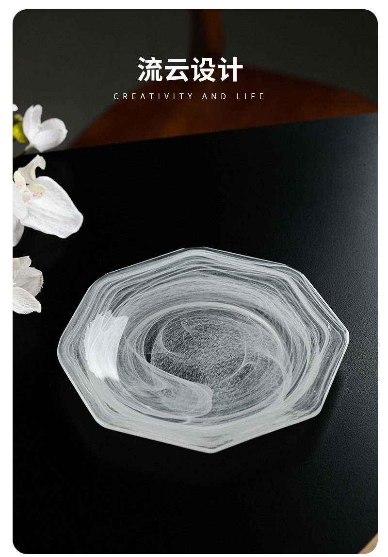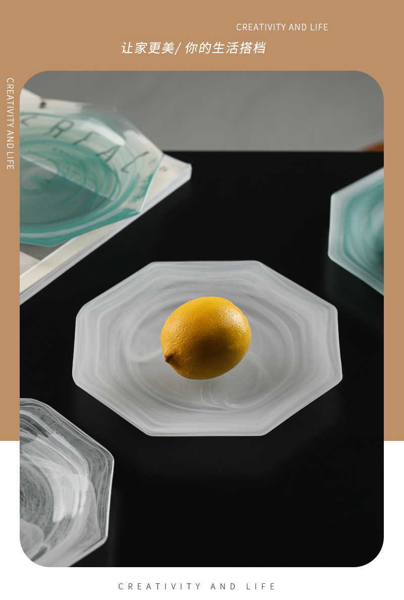 프리미엄 화이트 클라우드 플레이트 웨스턴 레스토랑 디스트 플레이트 과일 플레이트 라이트 럭셔리 프로스트 팔각형 유리 플레이트 조식 플레이트