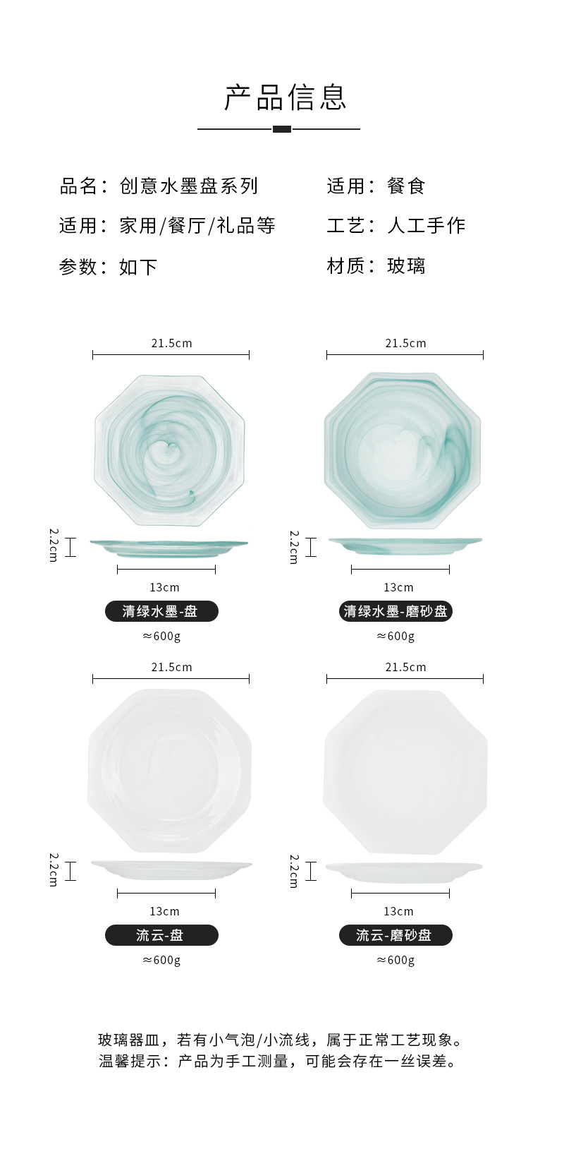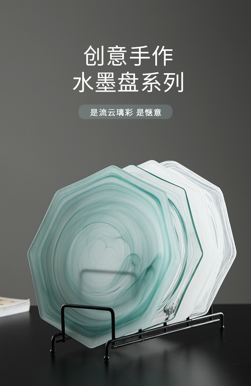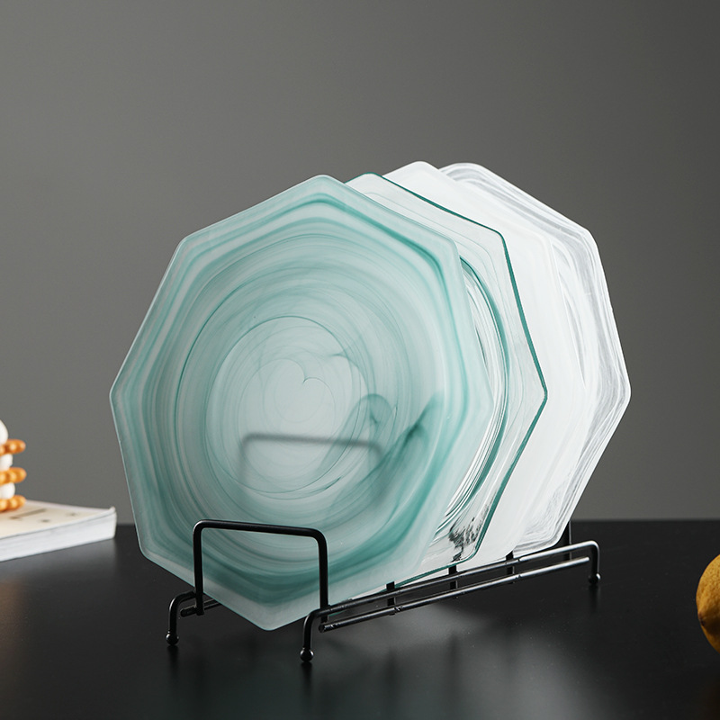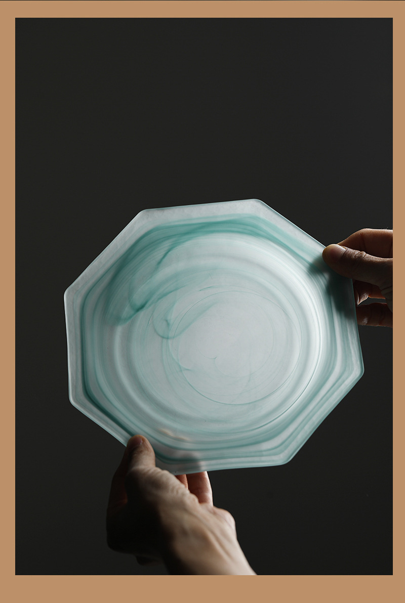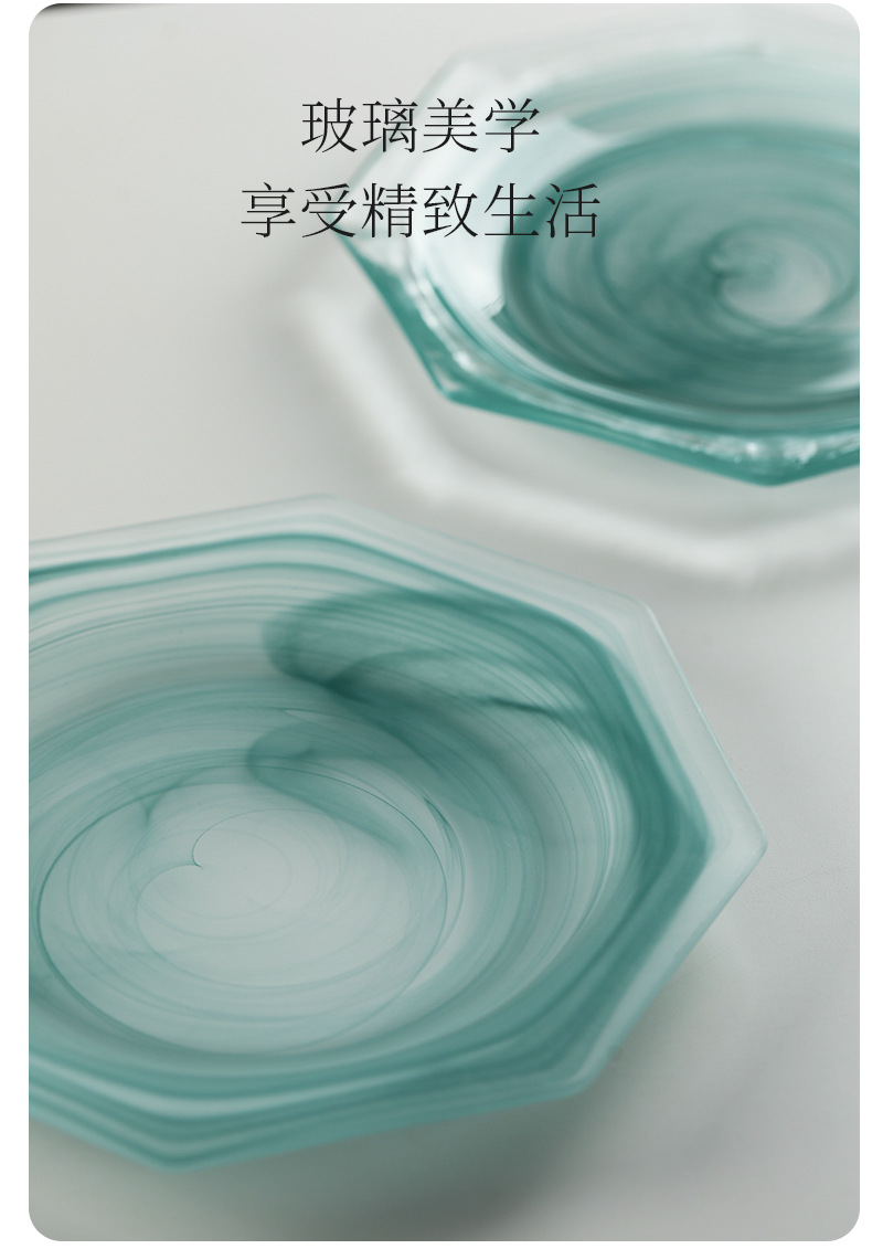 프리미엄 화이트 클라우드 플레이트 웨스턴 레스토랑 디스트 플레이트 과일 플레이트 라이트 럭셔리 프로스트 팔각형 유리 플레이트 조식 플레이트