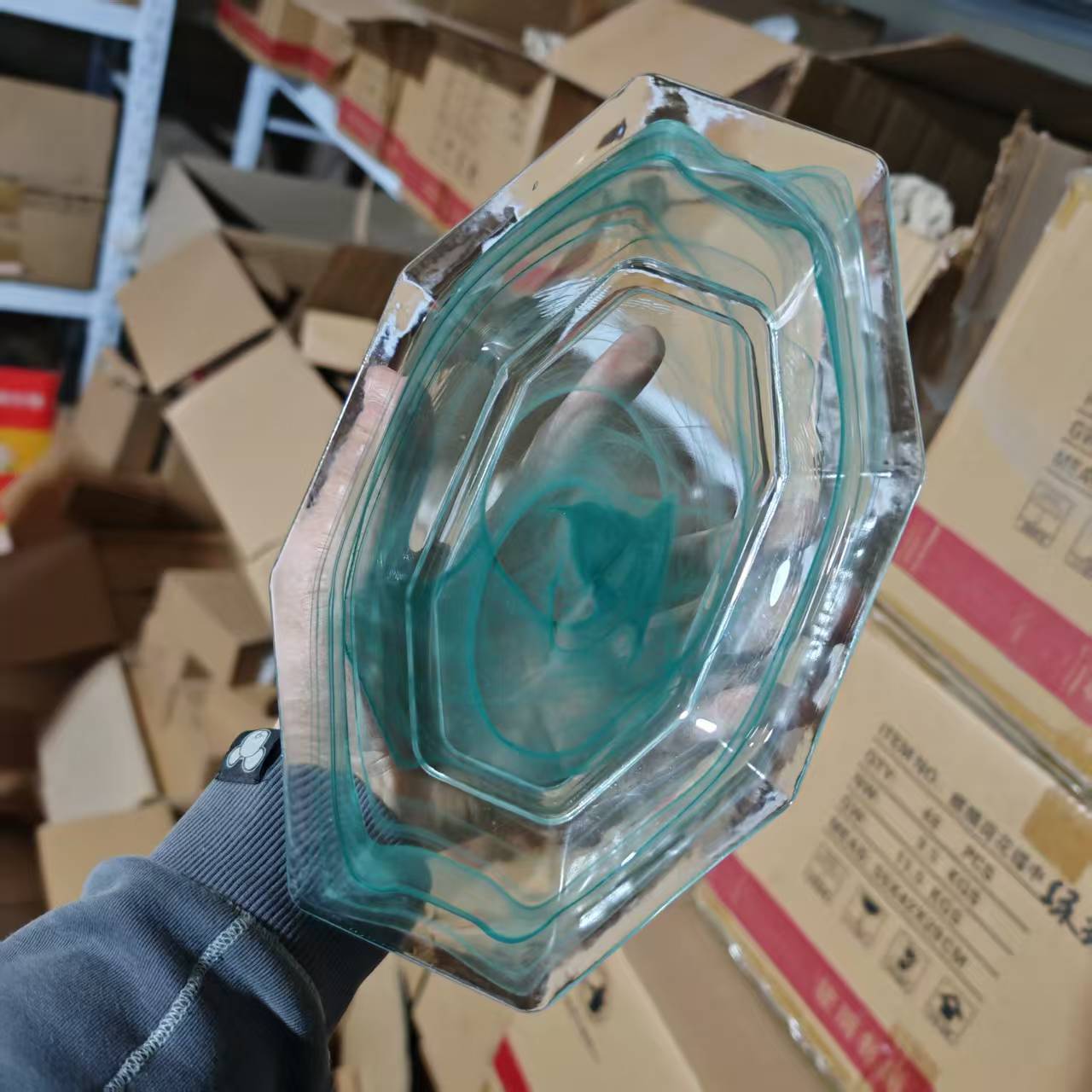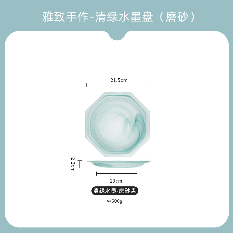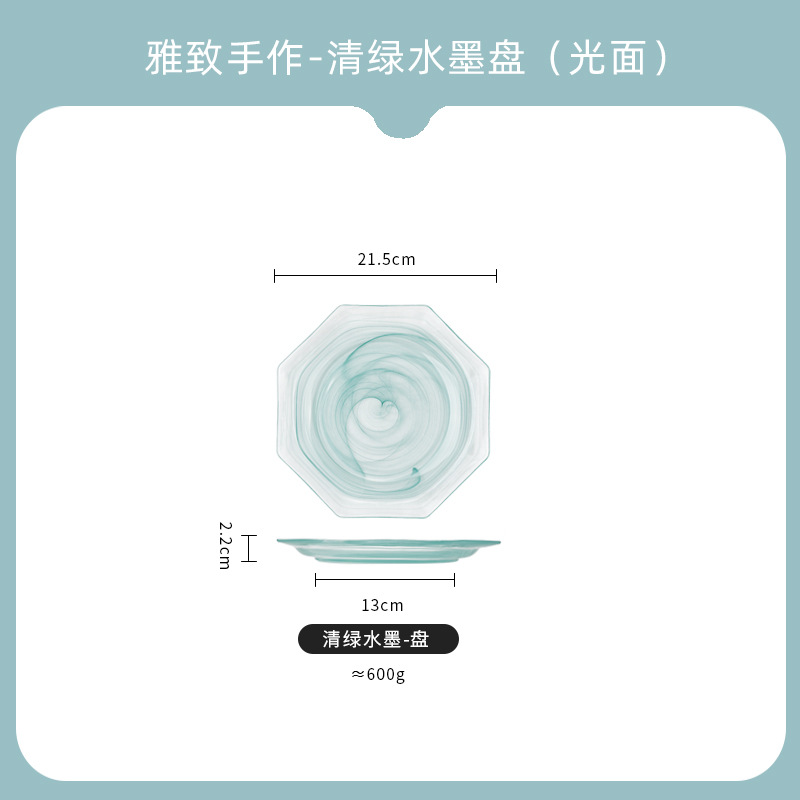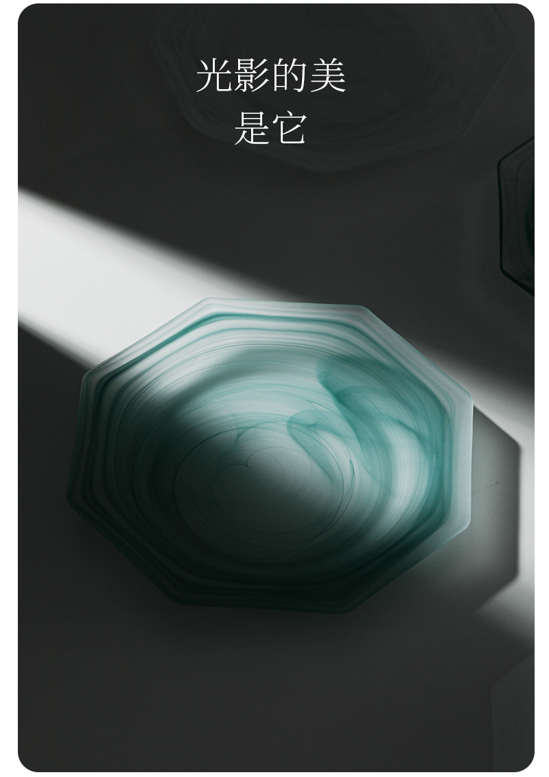 • 투명한 녹색 구름이 자욱한 팔각형 접시