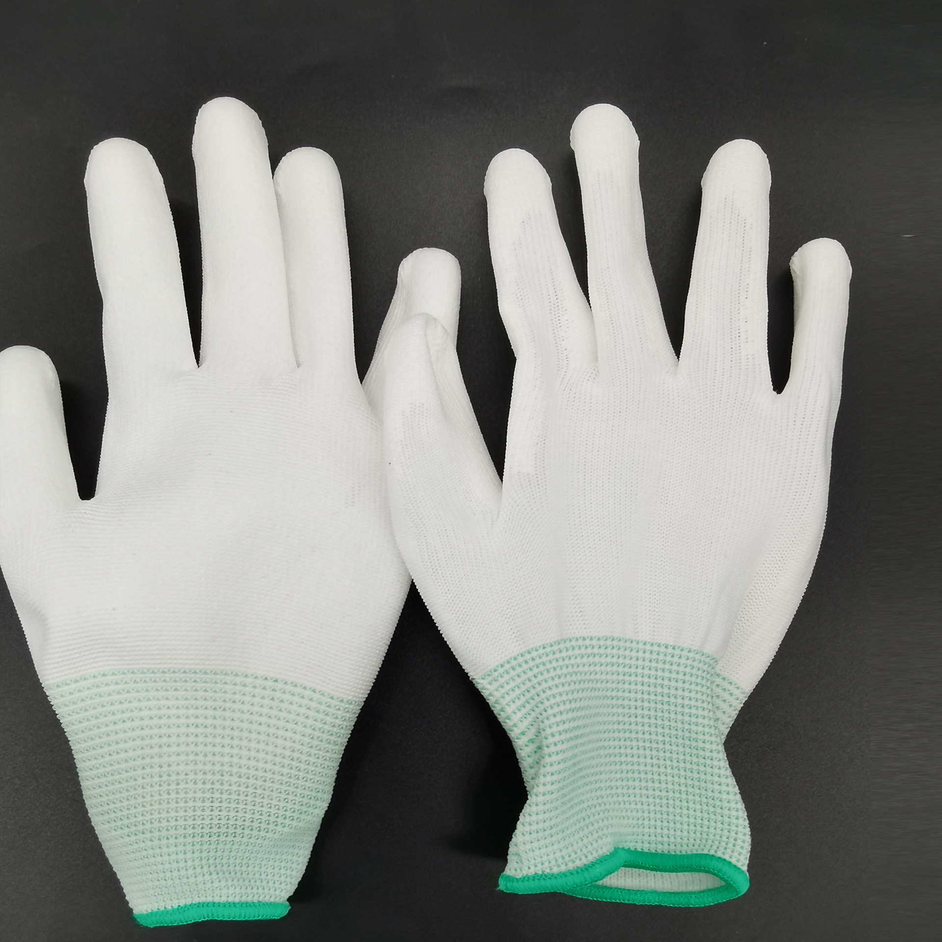 흰색 PU 코팅 손바닥 장갑 나일론 딥 전자 작업장 정전기 방지 원예 노동 보호 장갑 도매 코팅 손바닥 장갑스토어 가기