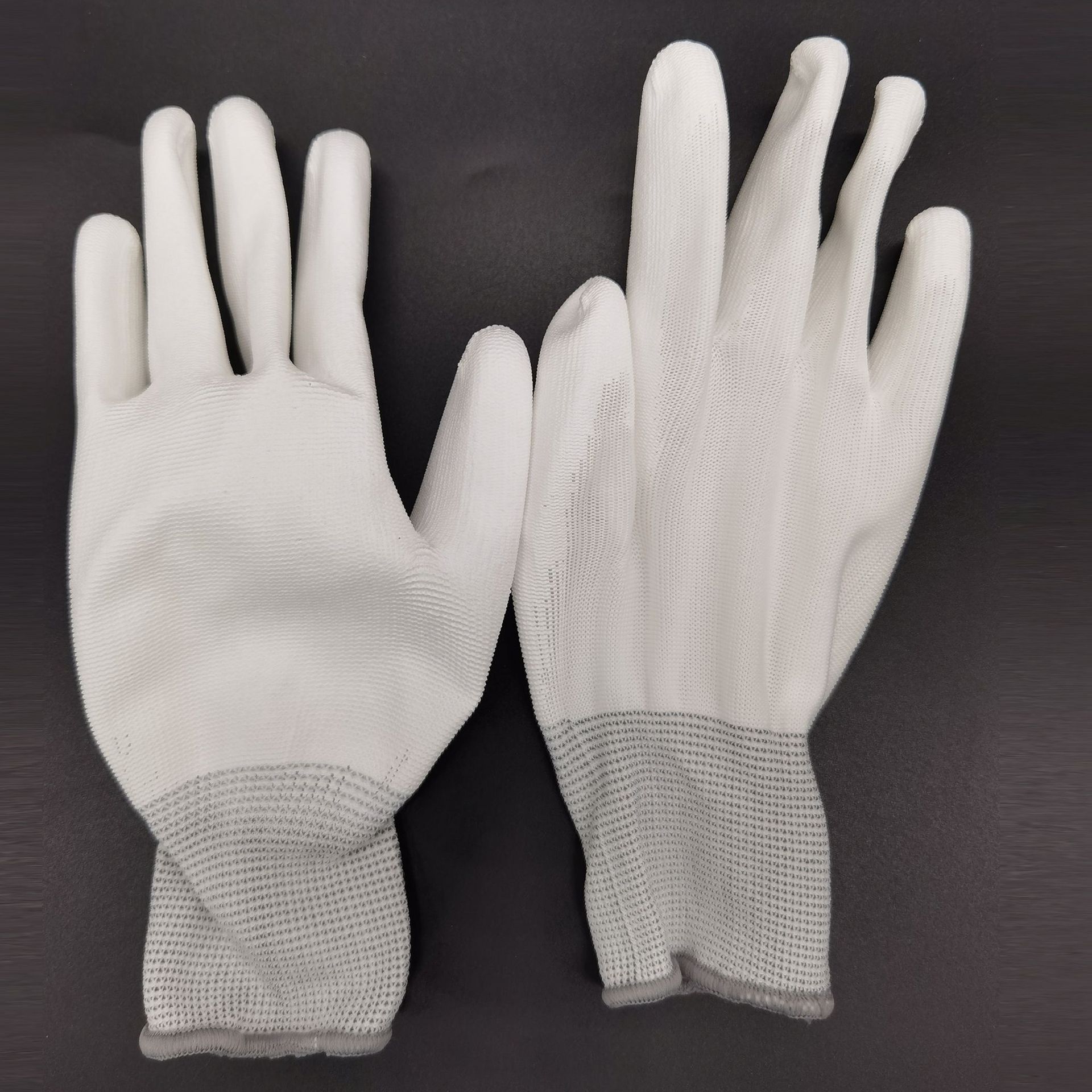흰색 PU 코팅 손바닥 장갑 나일론 딥 전자 작업장 정전기 방지 원예 노동 보호 장갑 도매 코팅 손바닥 장갑
