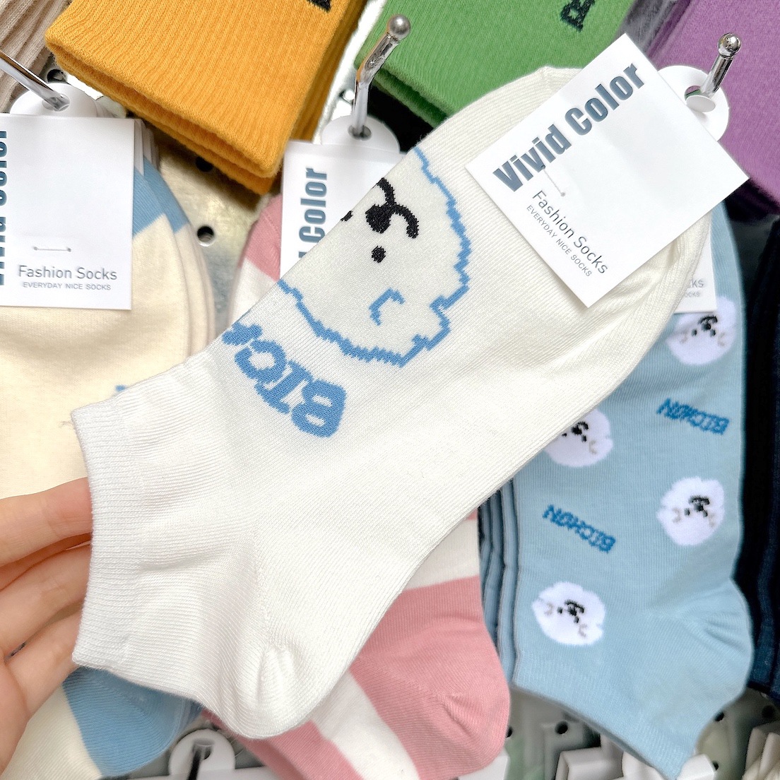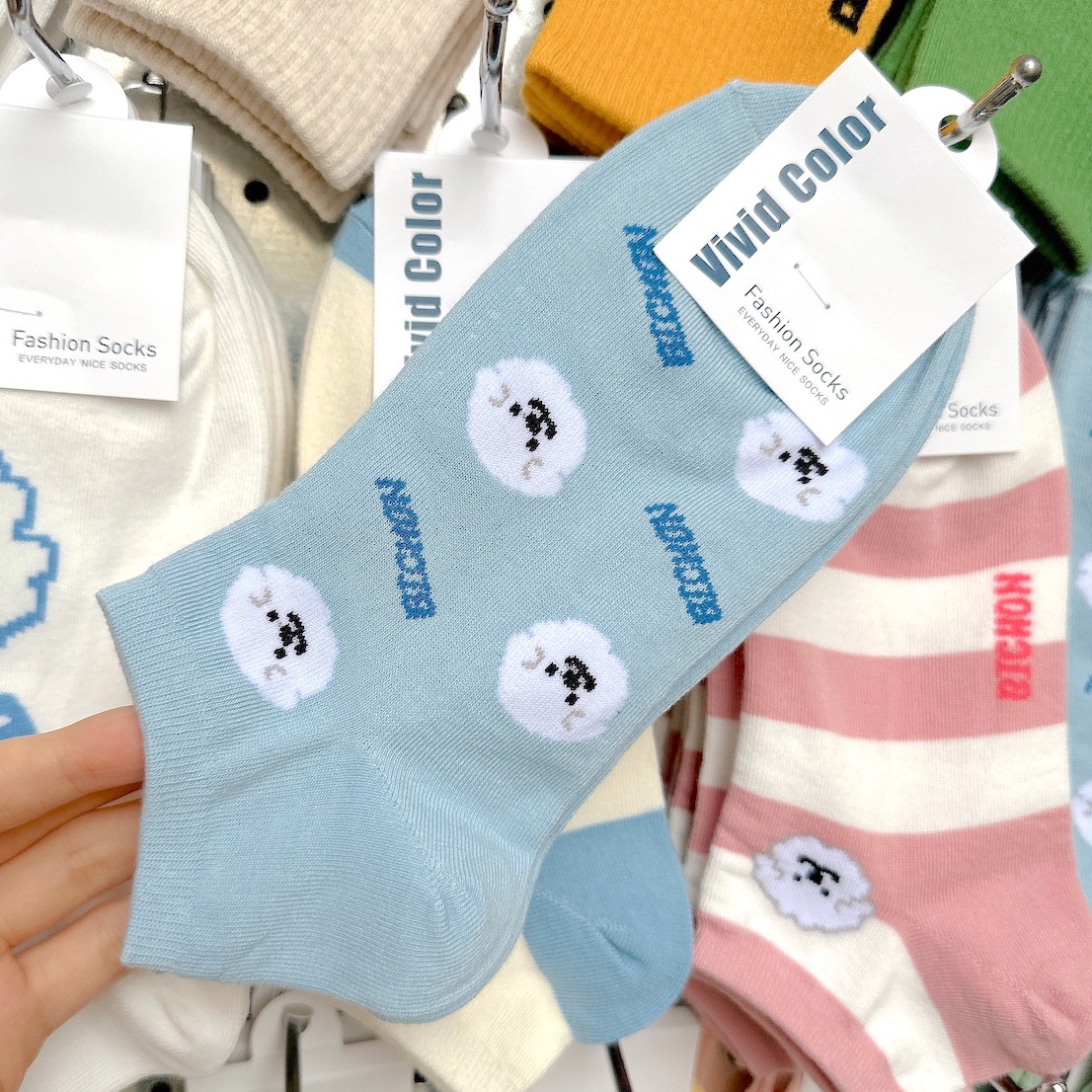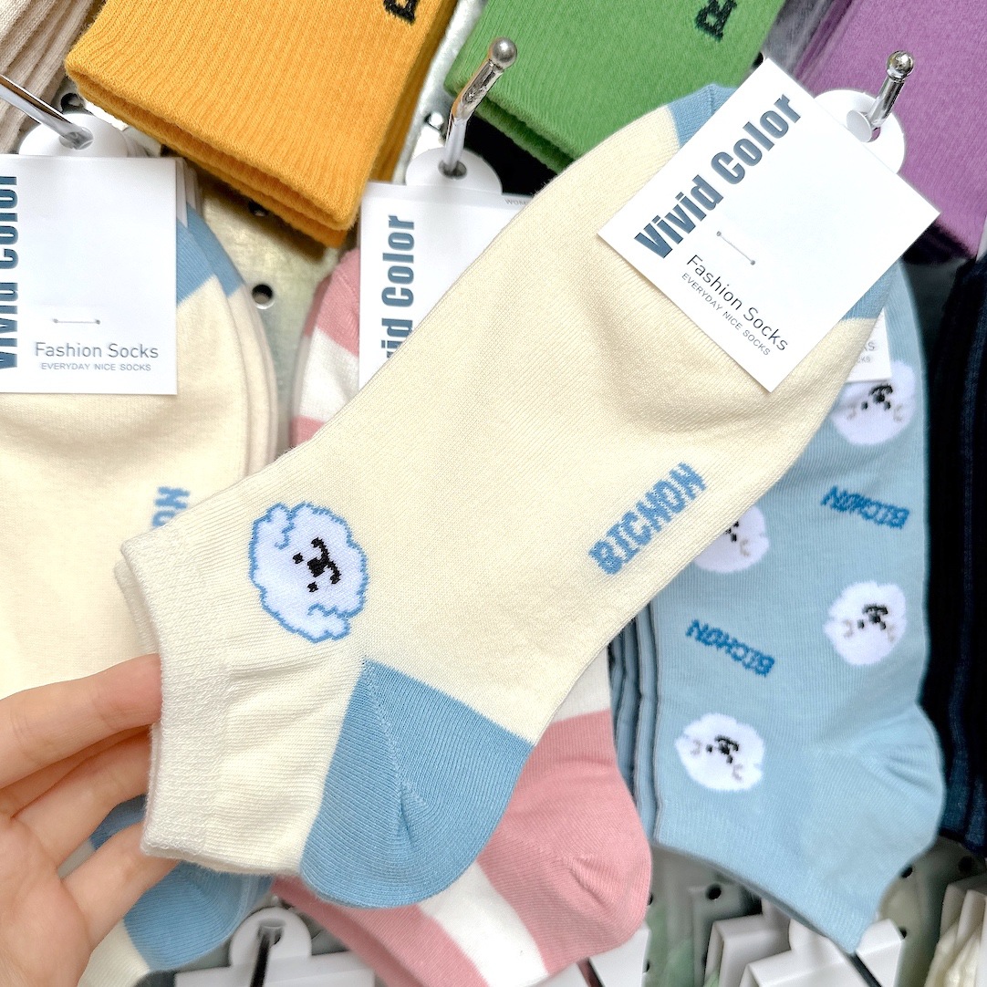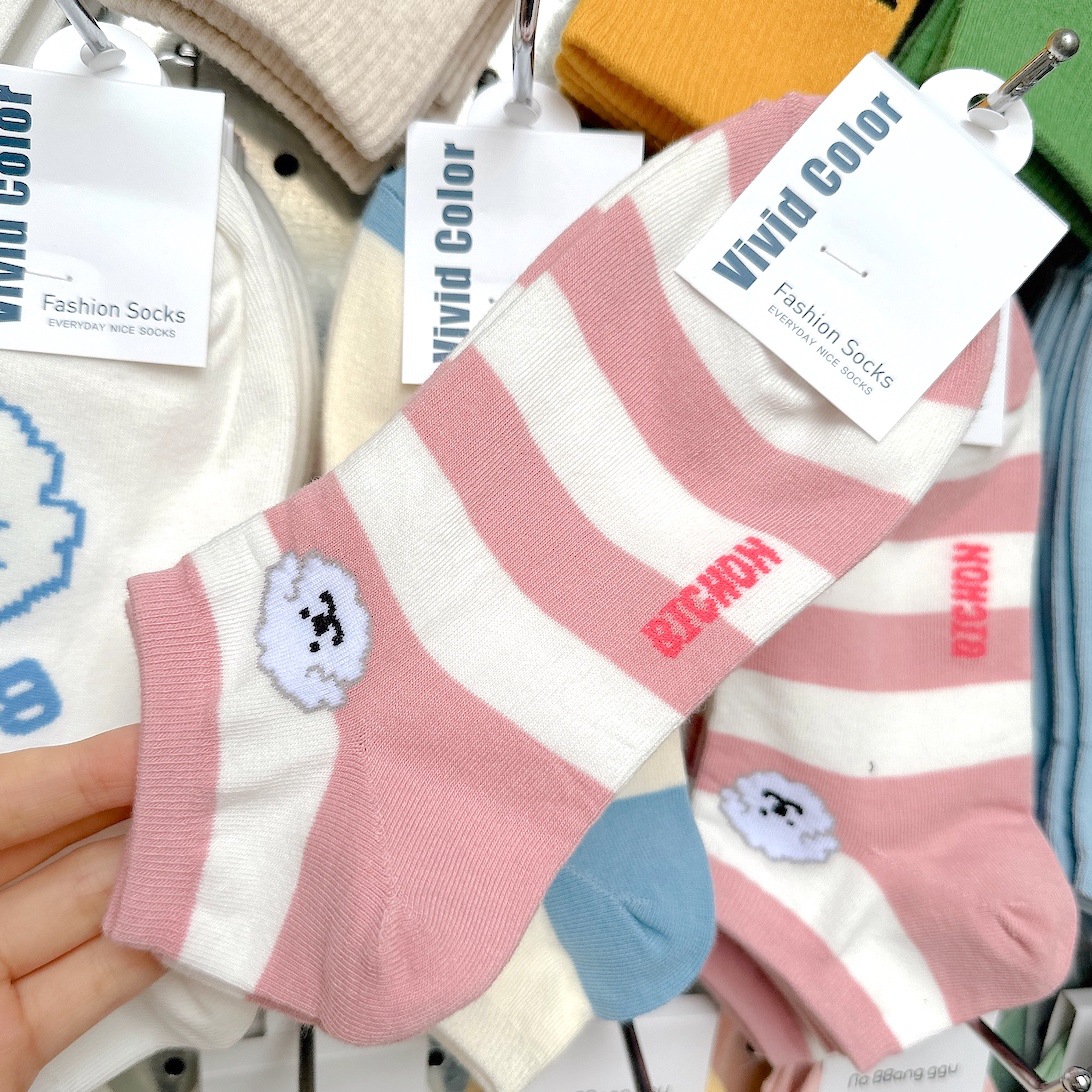 [재고 있음] 여름 신작 컬러 블록 스트라이프 양말 여성용 2768vividcolor 화이트 클라우드 강아지 여성용 양말