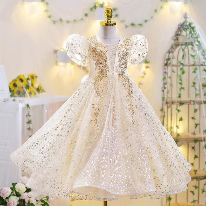 여자 원피스 여름 원피스 2024 새로운 어린이 원피스 공주 원피스 스타일 라인 공연 원피스 웨딩 여름