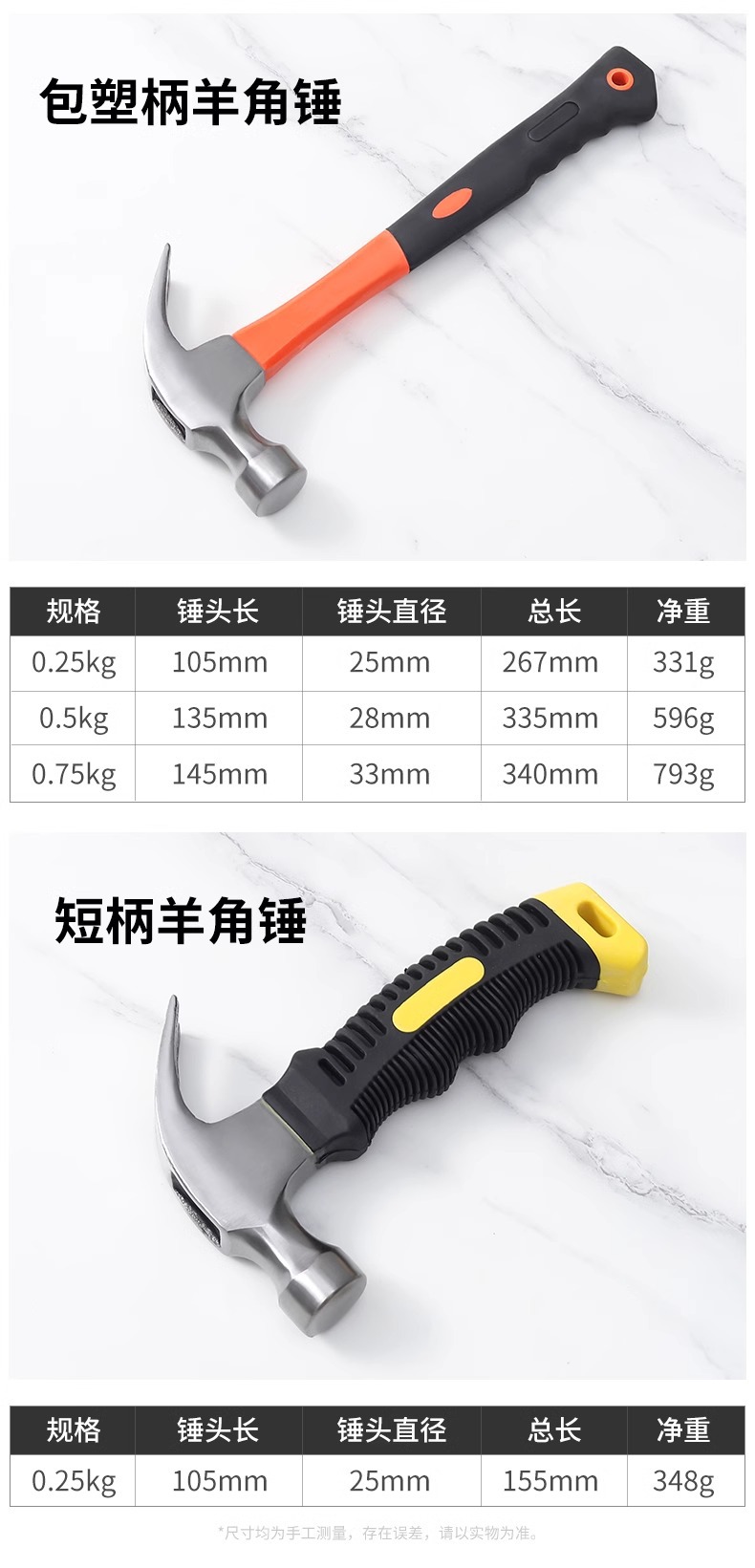 • [업그레이드된 충격흡수 고무코팅 모델] 클로 해머(0.5KG)