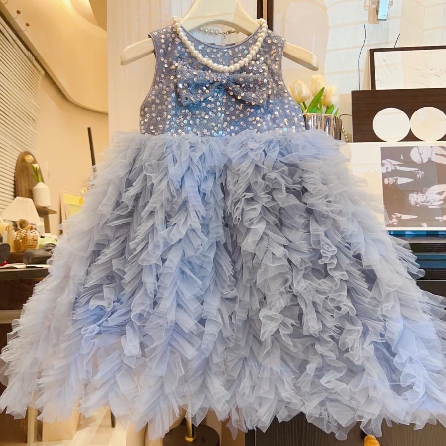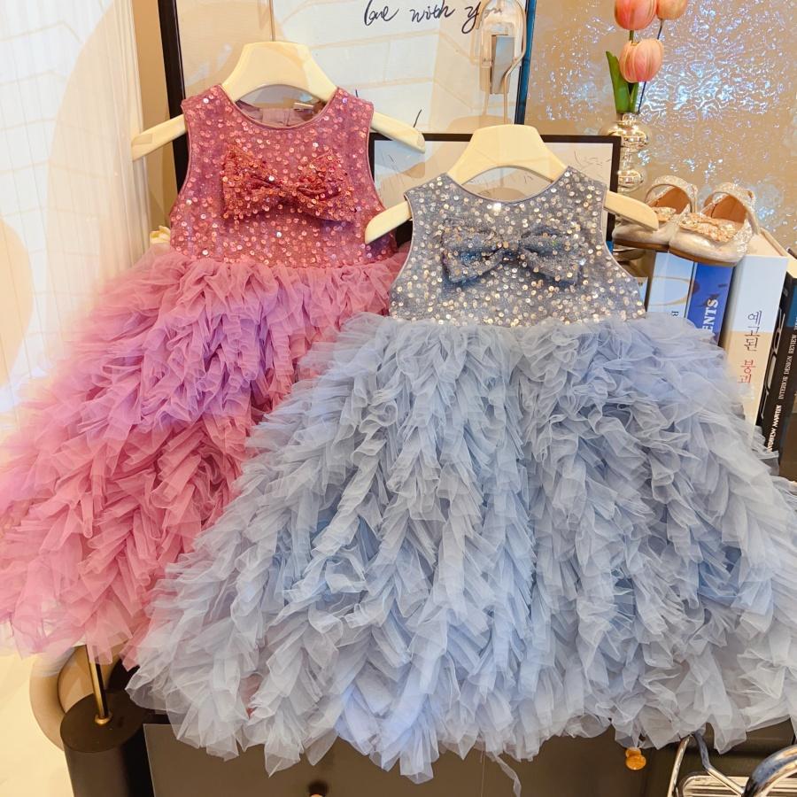 2025 여자 드레스 여름 어린이 빛 럭셔리 틈새 하이 엔드 드레스 거즈 스커트 아기 스팽글 조끼 공주 드레스스토어 가기