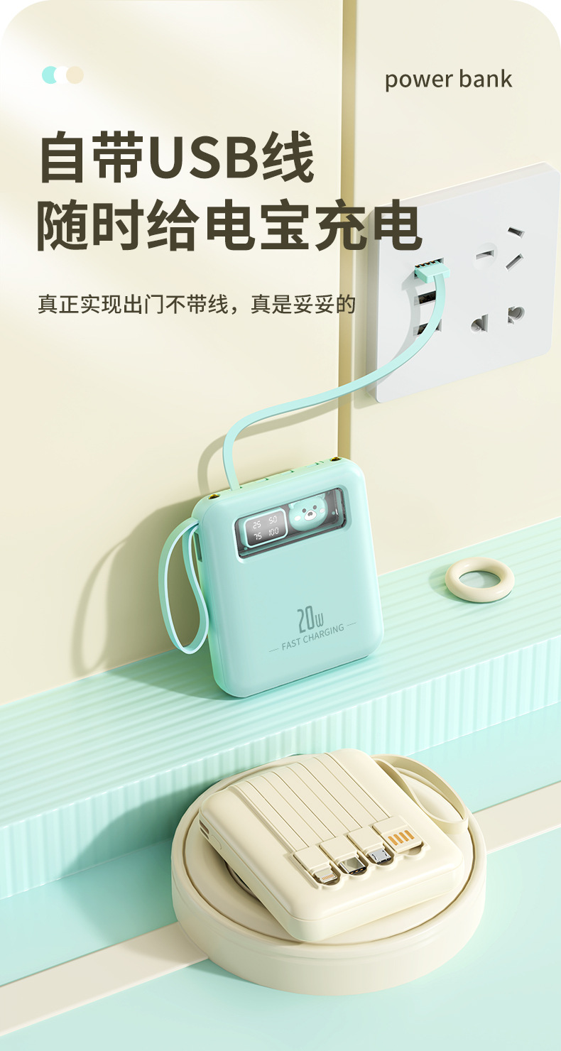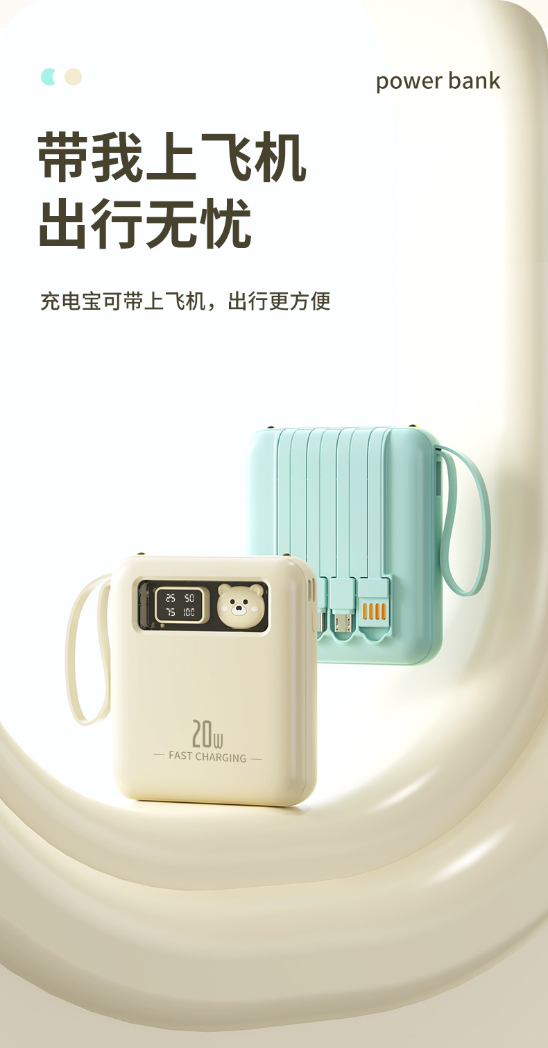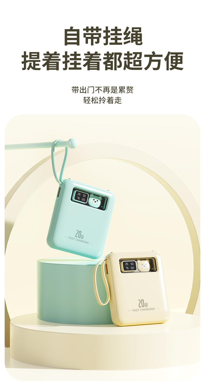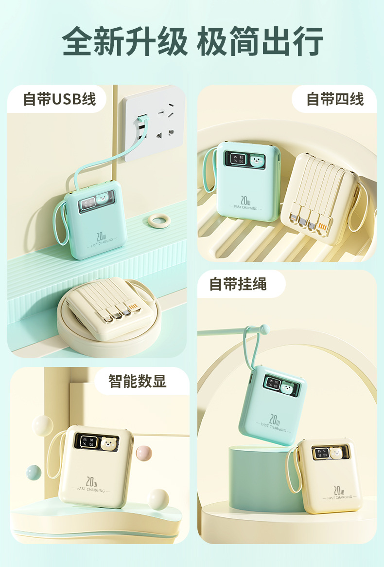 신제품 재고 있음, 내장 케이블 충전기 20000mAh 대용량 소형 휴대용 보조 배터리, 로고 인쇄 가능스토어 가기