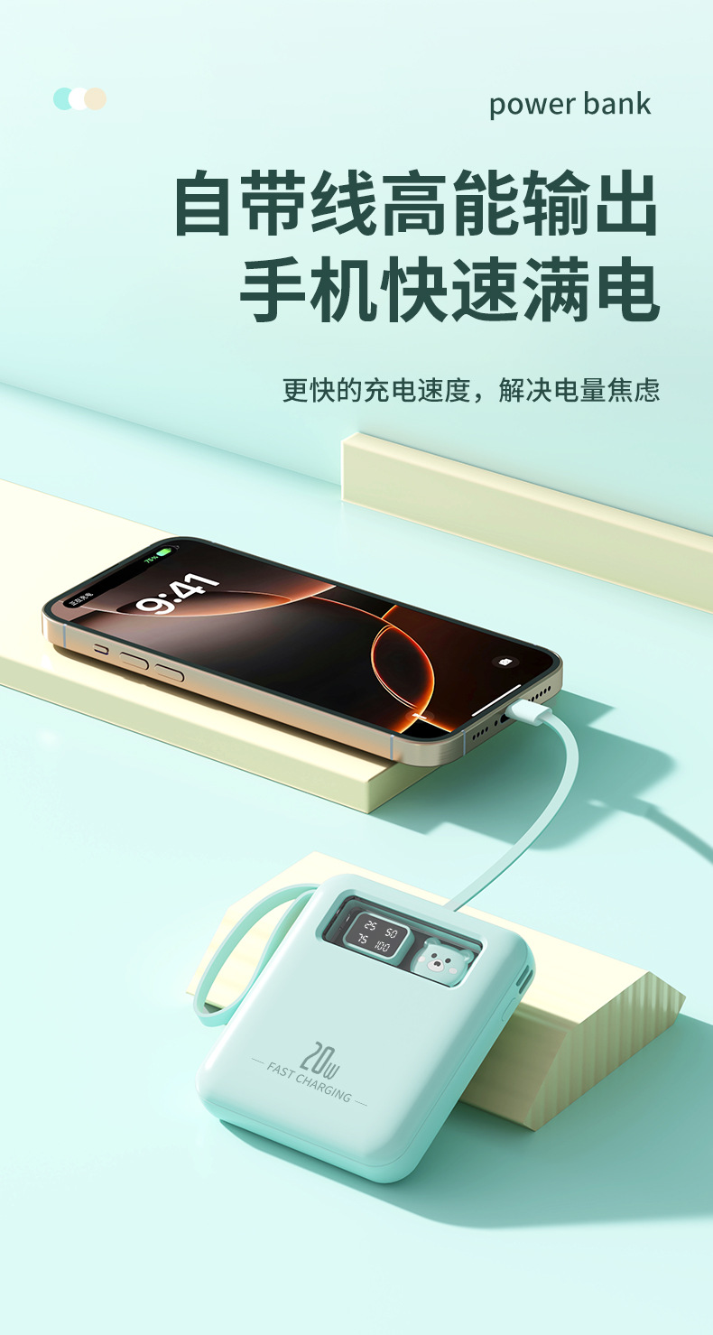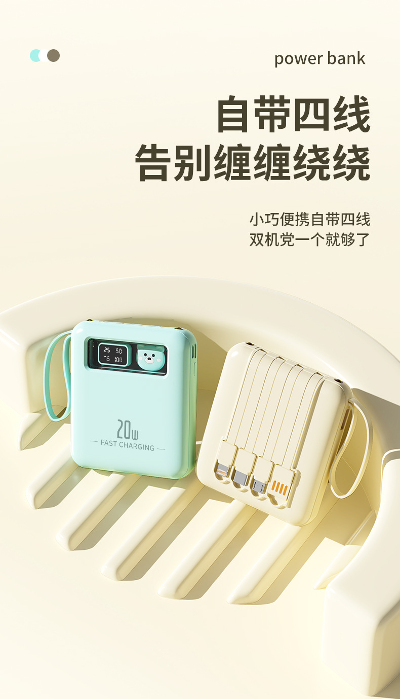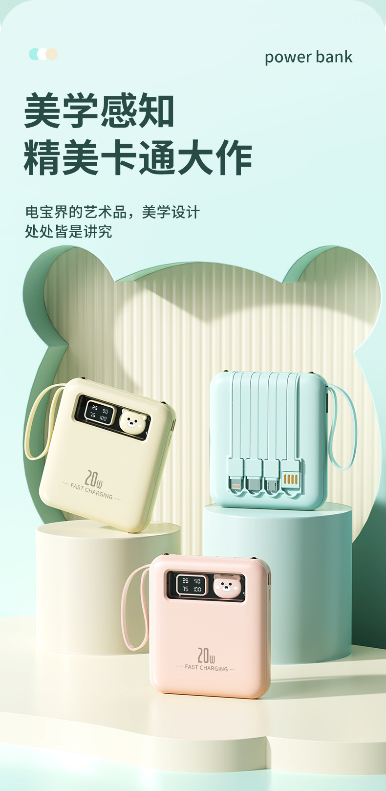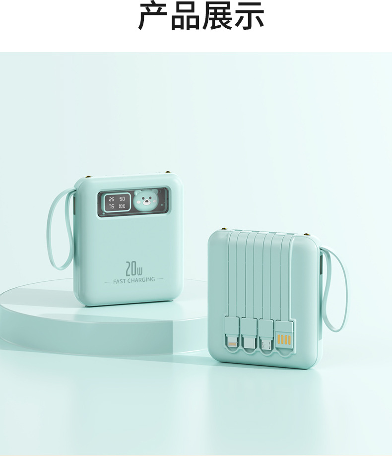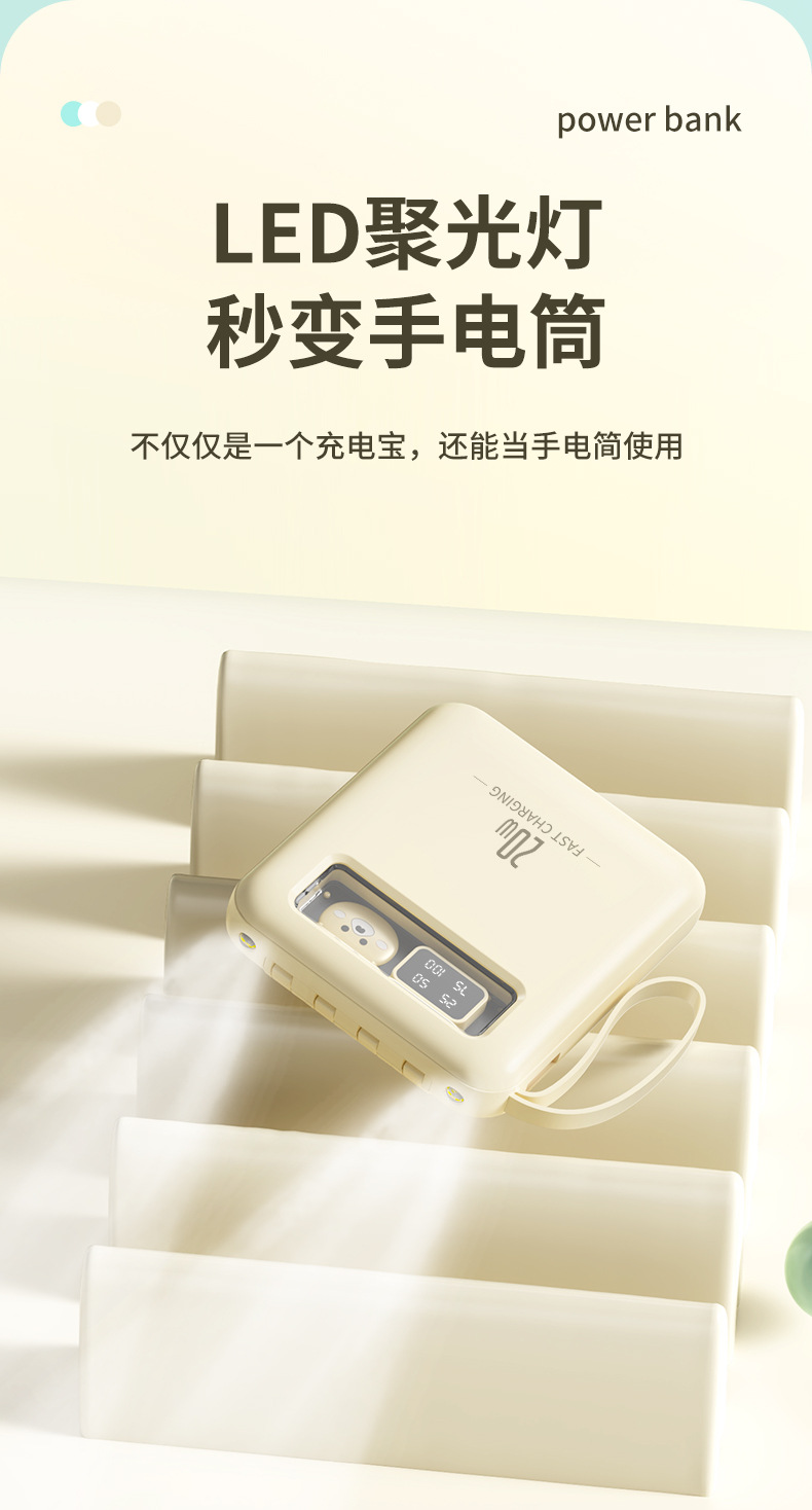 신제품 재고 있음, 내장 케이블 충전기 20000mAh 대용량 소형 휴대용 보조 배터리, 로고 인쇄 가능스토어 가기