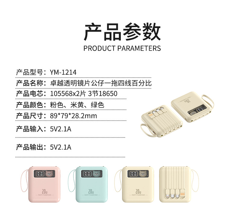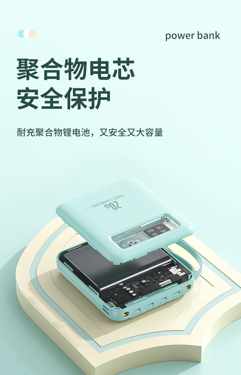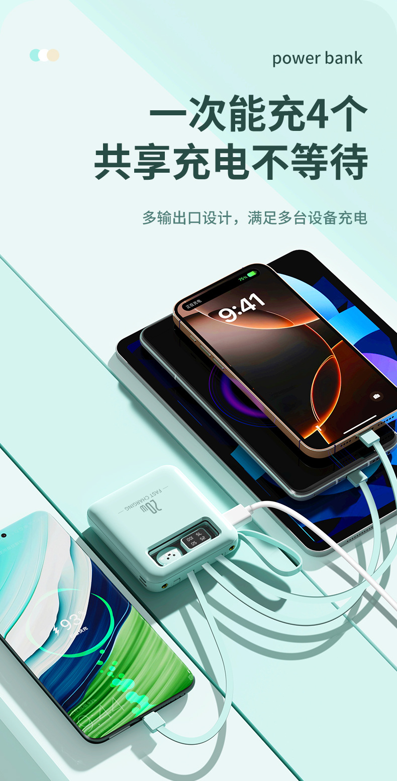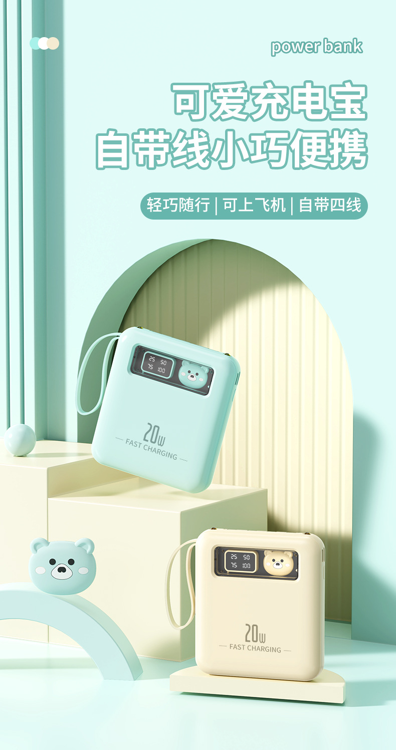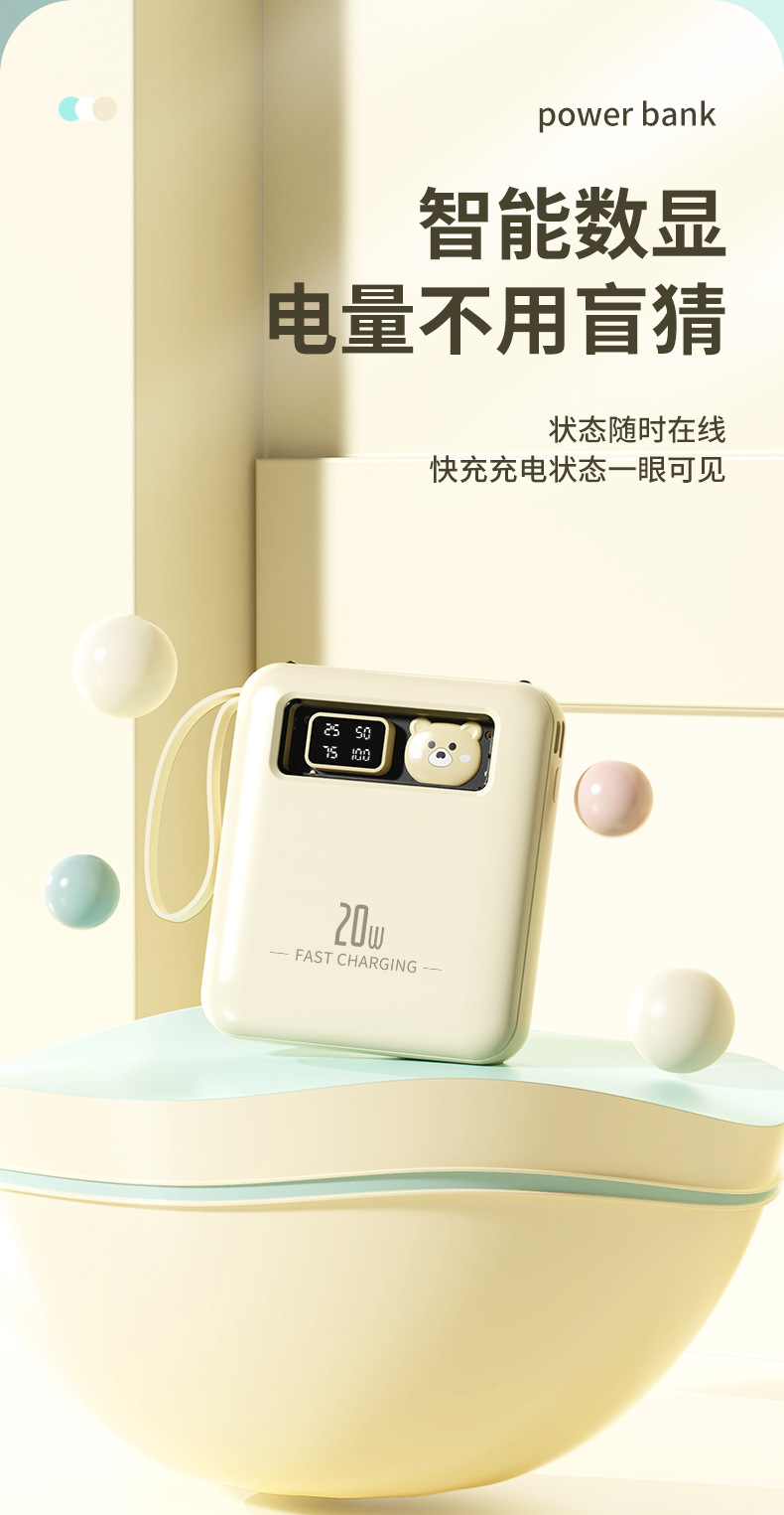 신제품 재고 있음, 내장 케이블 충전기 20000mAh 대용량 소형 휴대용 보조 배터리, 로고 인쇄 가능스토어 가기