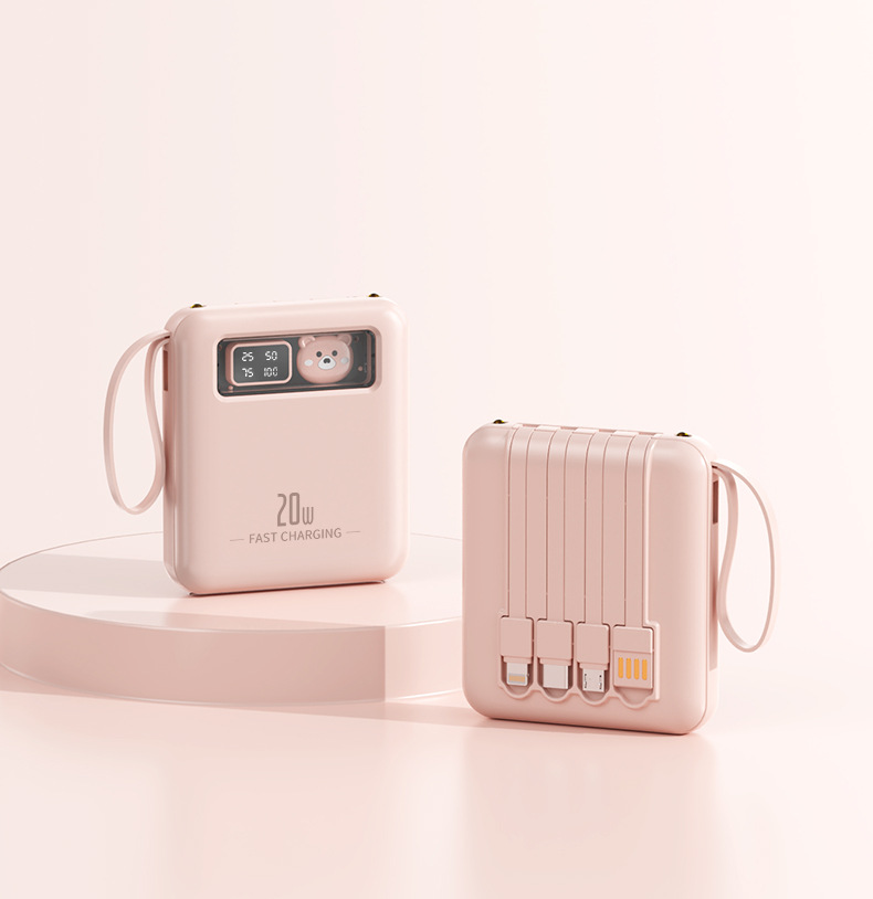 신제품 재고 있음, 내장 케이블 충전기 20000mAh 대용량 소형 휴대용 보조 배터리, 로고 인쇄 가능
