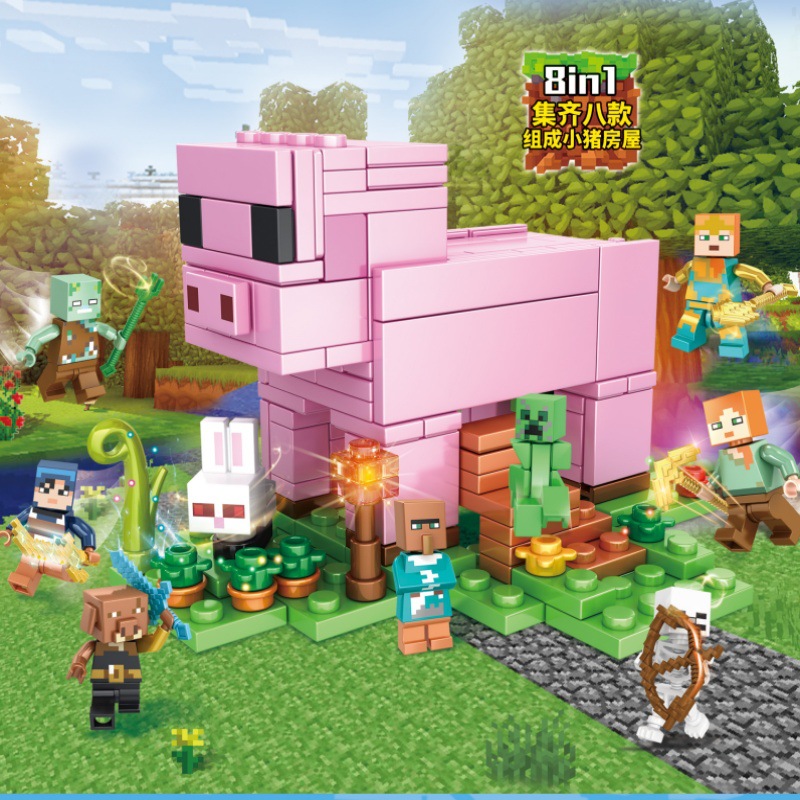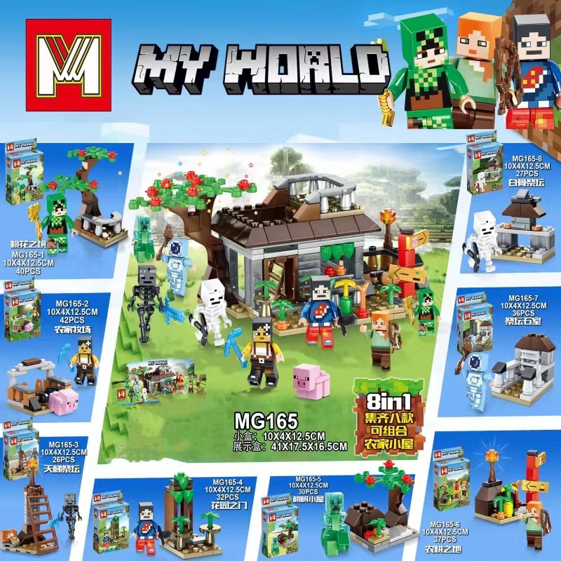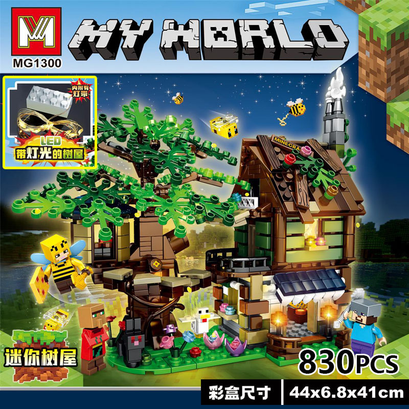 높은 난이도 마인크래프트 빌딩 블록 작은 블라인드 박스 블라인드 백 미니 피규어 트리 하우스 마을 집 조립 장난감