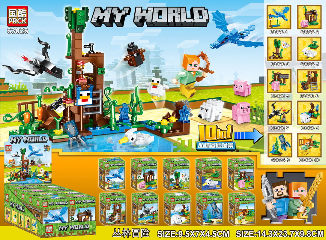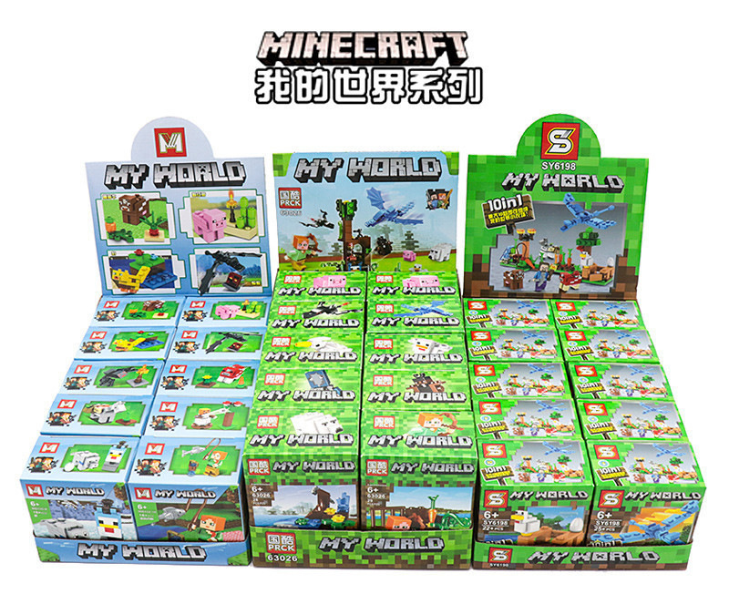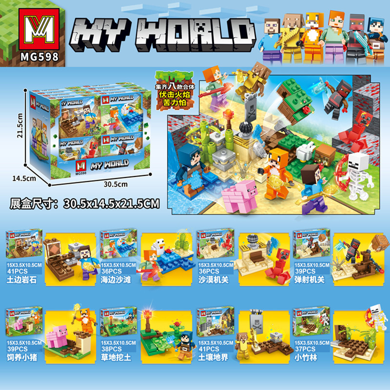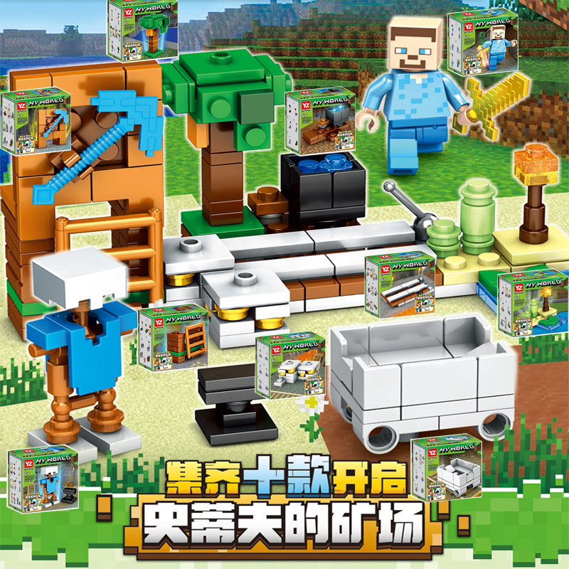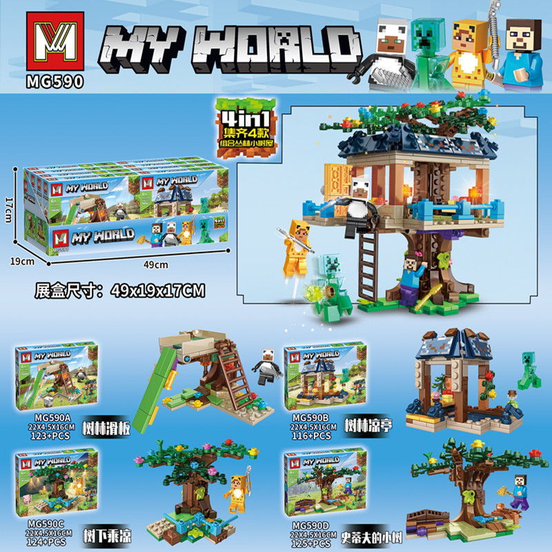 높은 난이도 마인크래프트 빌딩 블록 작은 블라인드 박스 블라인드 백 미니 피규어 트리 하우스 마을 집 조립 장난감스토어 가기