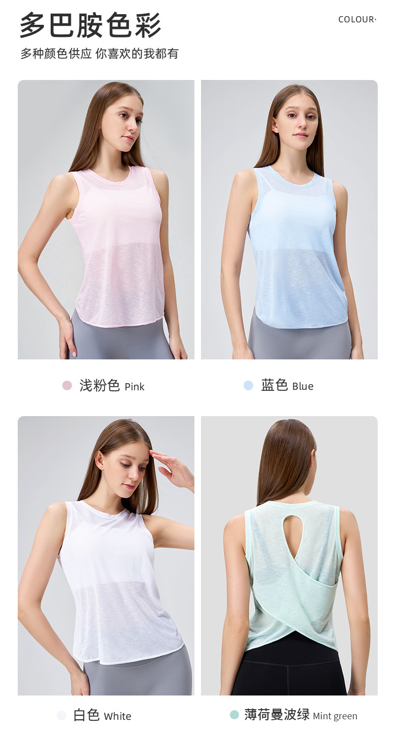 여성용 여름 스포츠 블라우스, 얇은 민소매 탑, 섹시한 컷아웃 피트니스 탑, 몸매를 가려주는 아름다운 등라인 요가복 블라우스스토어 가기