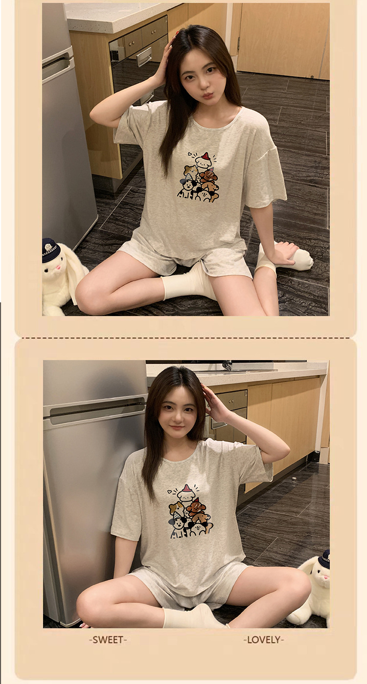여성용 모달 잠옷 여름 반팔 시원한 만화 소녀 18 세 중학생 소녀 여름 얇은 가정복스토어 가기