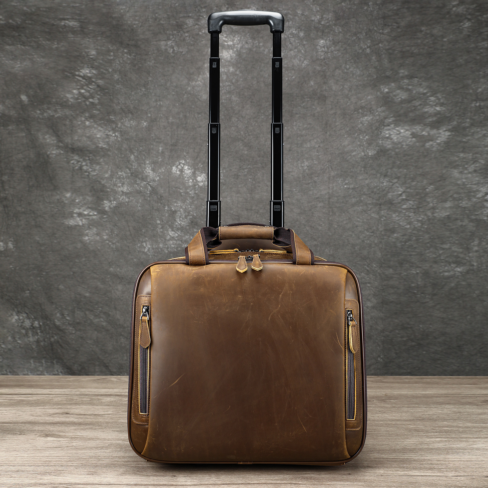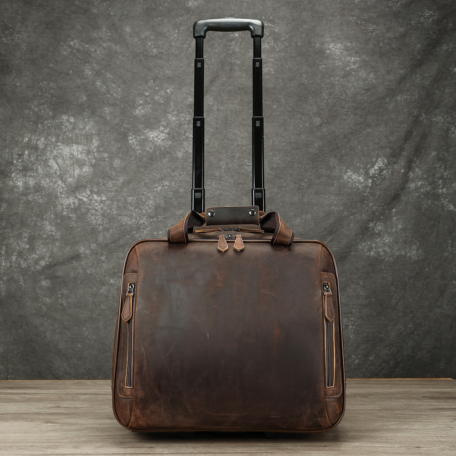 남성과 여성을 위한 정품 가죽 복고풍 가방, 다기능 캐주얼 여행 트롤리 케이스 16inch 비즈니스 출장 탑승 케이스 트렌드스토어 가기