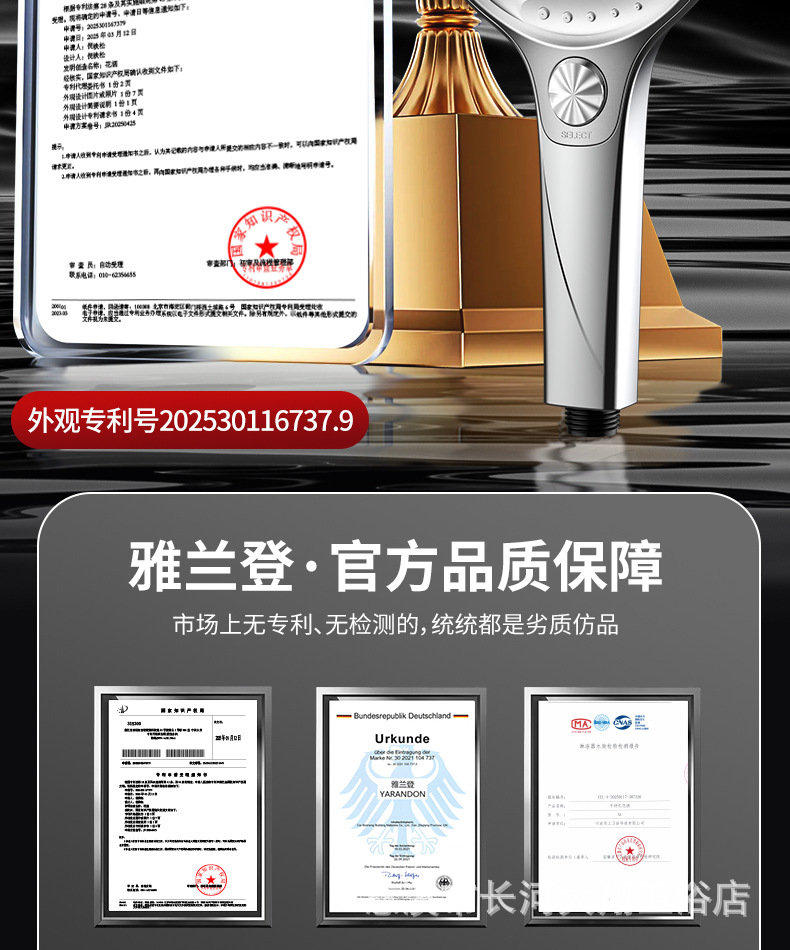 本花洒为专利产品,仿冒必究!