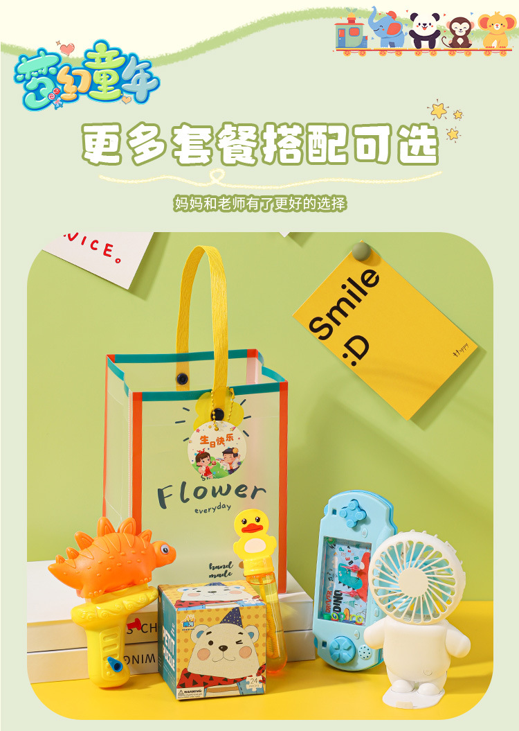 • 선물가방 세트 [물총 + 만화 퍼즐 + 충전식 선풍기 + 링 게임기]