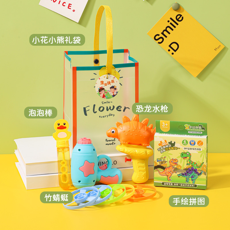 • 선물가방 세트 [대나무 잠자리 + 공룡 물총 + 버블수 + 핸드페인팅 퍼즐]