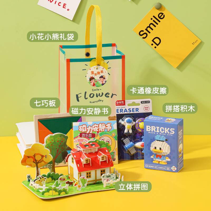 • 선물가방 세트 [입체퍼즐+만화블럭+탱그램+만화지우개+조용한책]