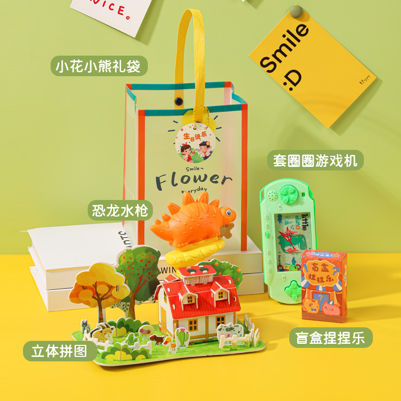 • 선물가방 세트 [공룡 물총 + 입체 퍼즐 + 링 게임기 + 블라인드 박스 핀치 펀]