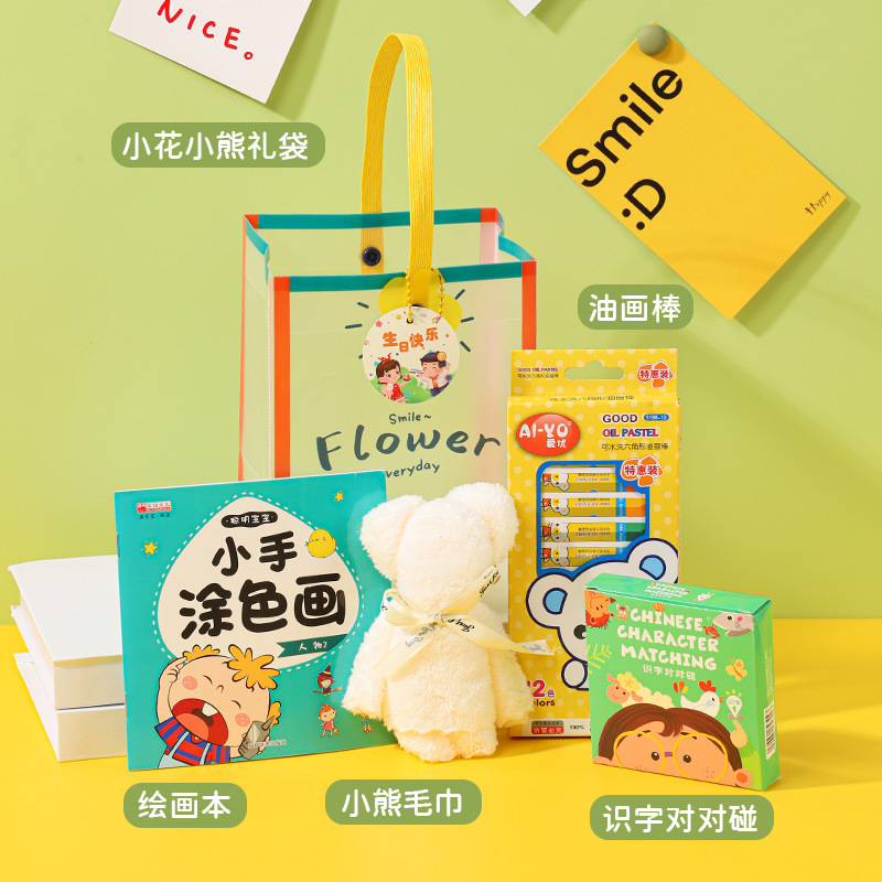• 선물가방 세트 [슬라임 + 크레용 + 곰수건 + 블록연필깎이]