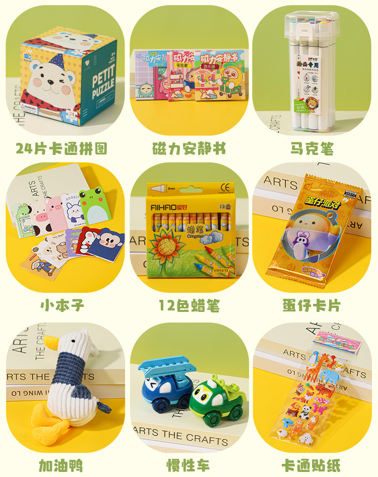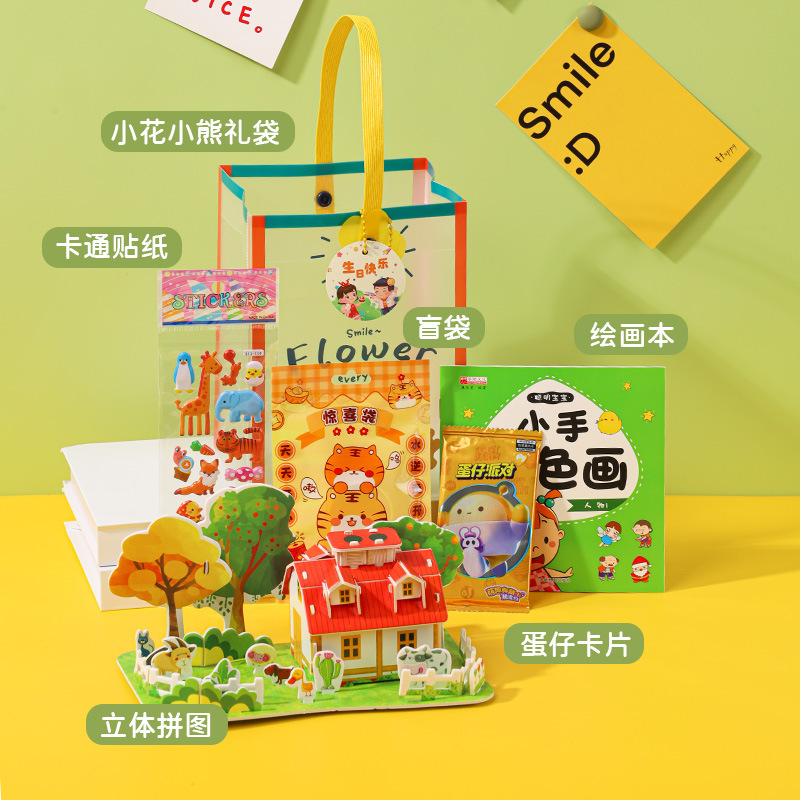 • 선물 가방 세트 [만화 스티커 + 만화 퍼즐 + 사격 장난감 + 칠해진 달걀 껍질 + 그림책 + 추측 달걀]