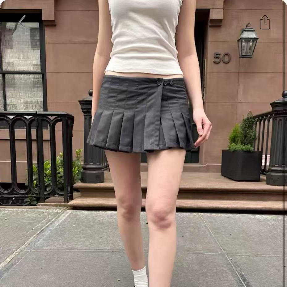 BM 스타일 회색 원피스 버튼 주름 치마 미니 스커트 낮은 허리 주름 슬림 A 라인 스커트 핫 걸 스커트 여성스토어 가기
