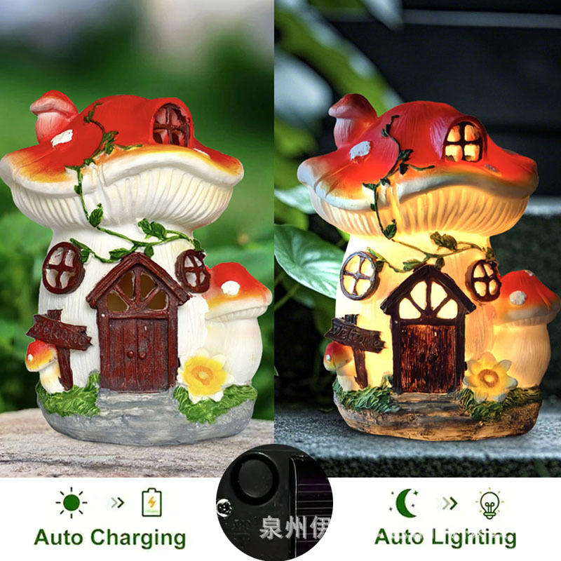 야외 태양 버섯 집 장식 조명 수지 공예 장식품 정원 안뜰 잔디 원예 조경 동상스토어 가기