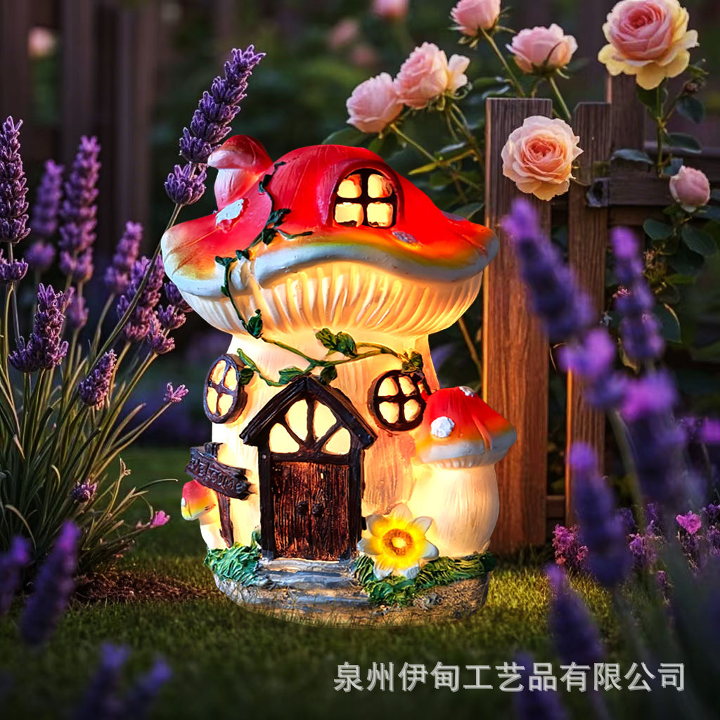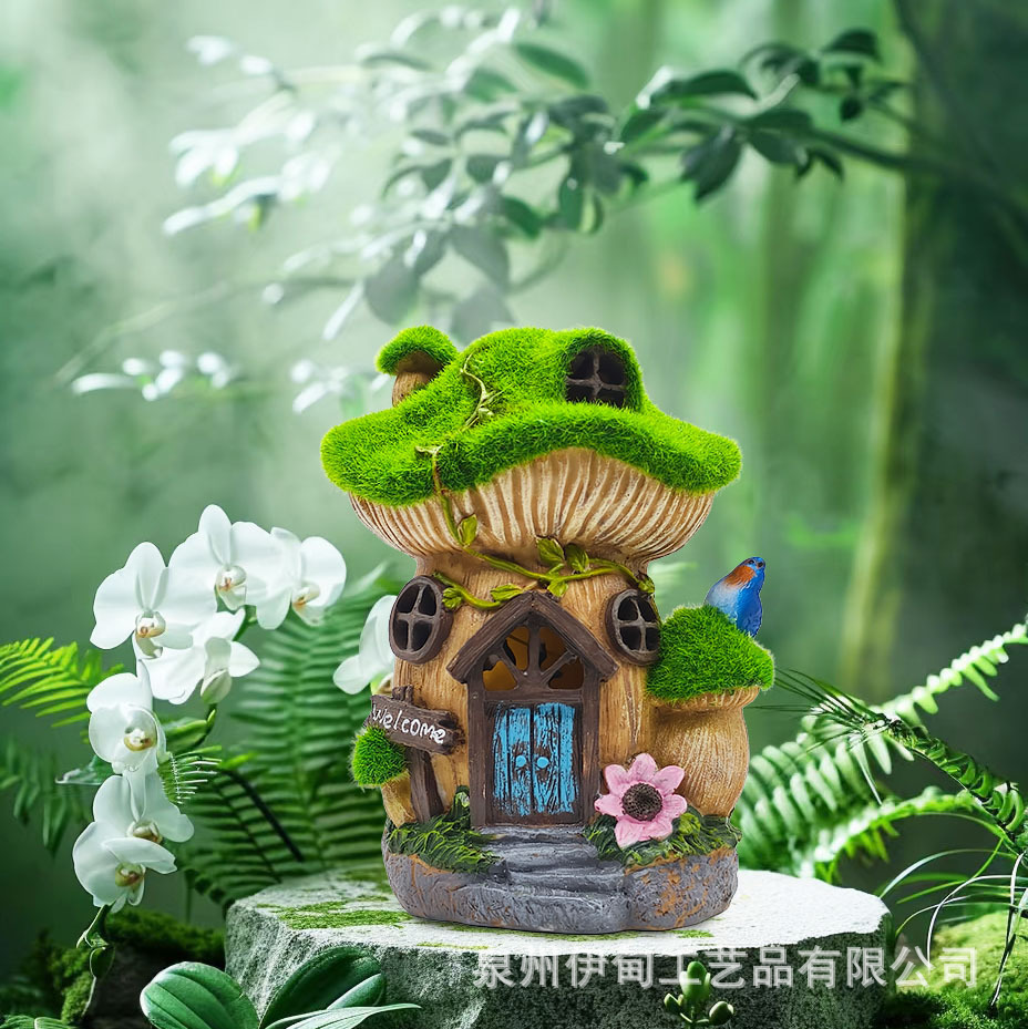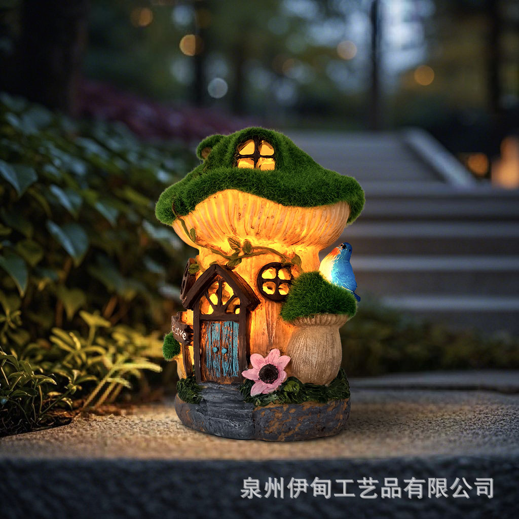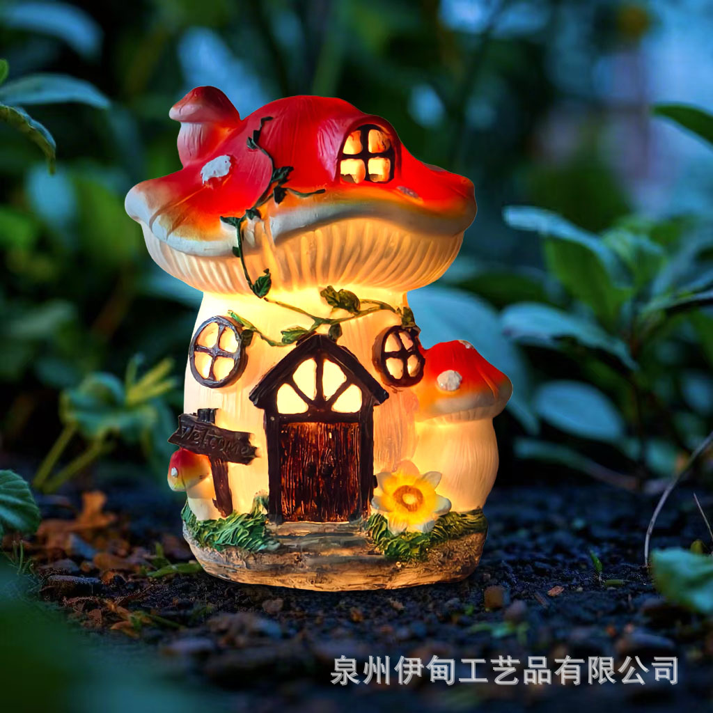야외 태양 버섯 집 장식 조명 수지 공예 장식품 정원 안뜰 잔디 원예 조경 동상