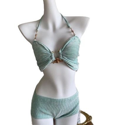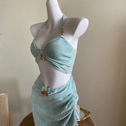 민트 그린 수영복 여성용 섹시한 작은 가슴 쪼개기 3 피스 비키니 하이 엔드 휴가 순수한 욕망 소녀스토어 가기