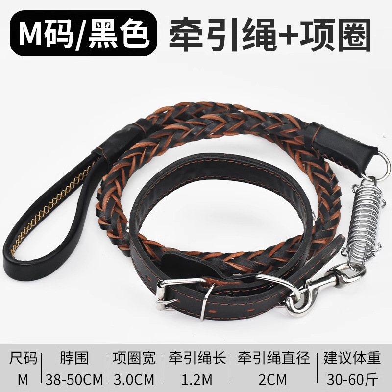 狗狗牵引绳中大型犬牛皮项圈脖套金毛德牧防爆冲遛狗绳子宠物用品스토어 가기