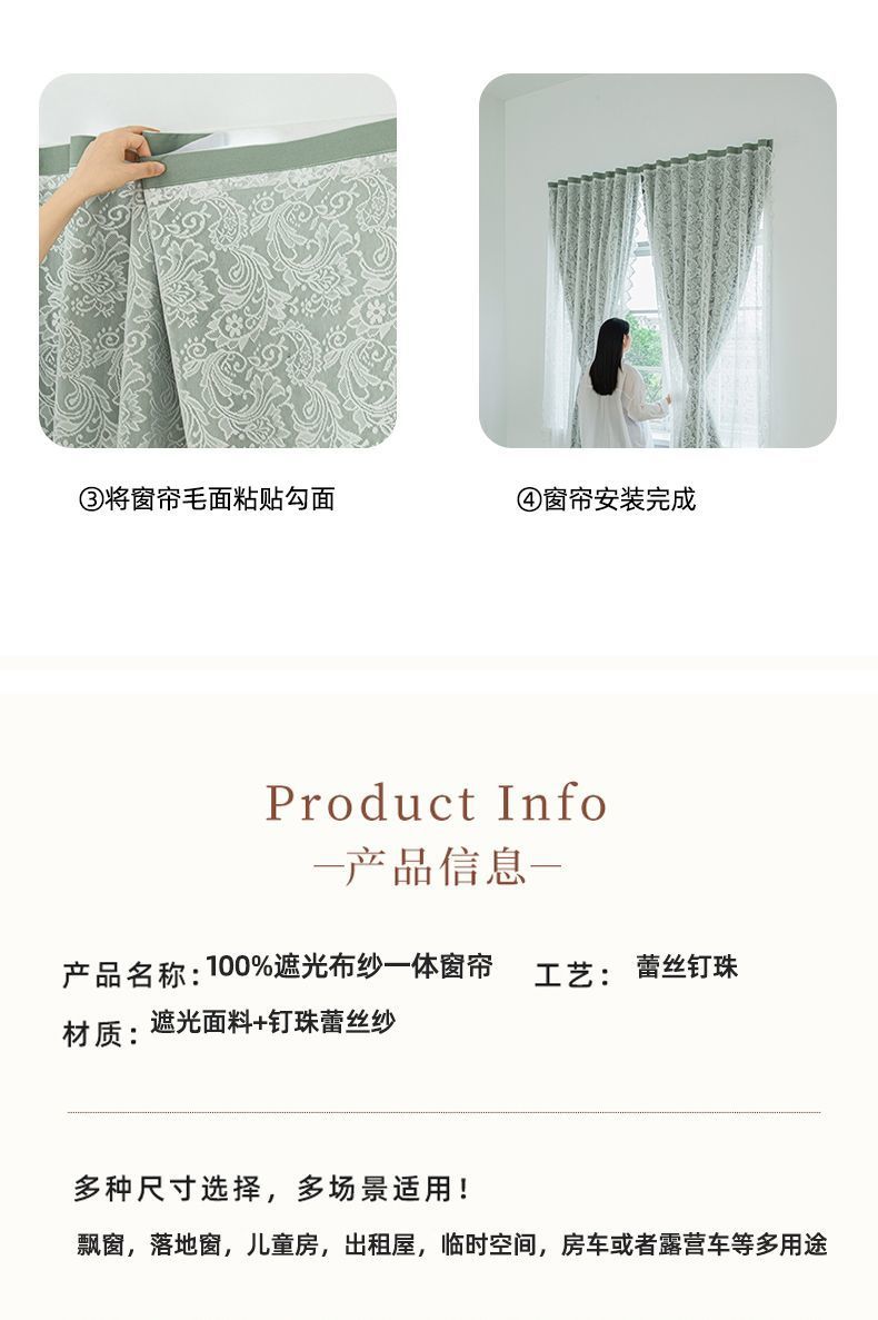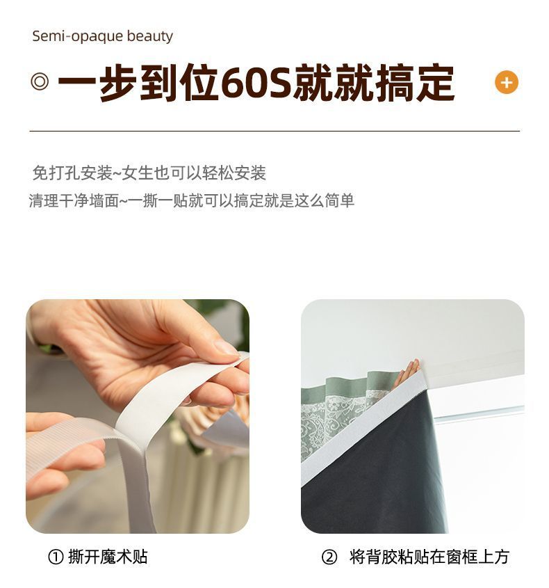 전체 음영 커튼 임대 주택 침실 베이 창 벨크로 펀치 무료 설치 자체 접착 음영 작은 창 짧은 커튼스토어 가기