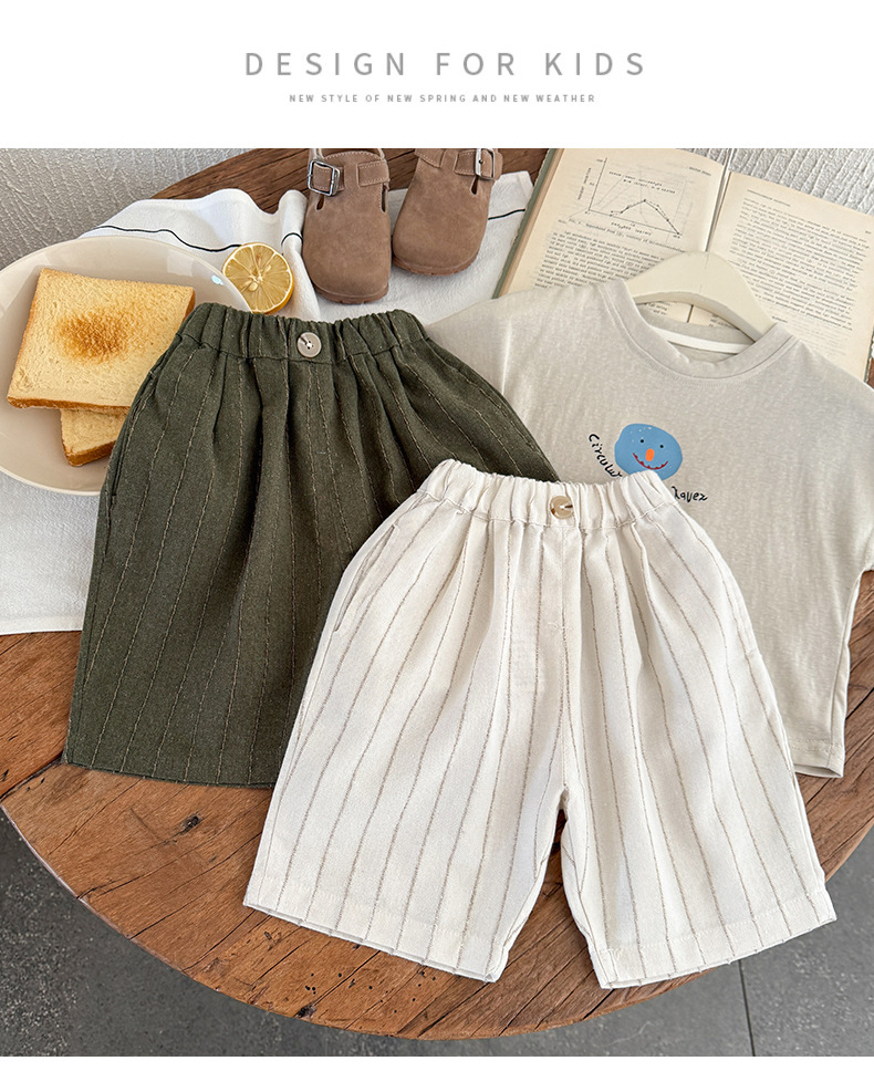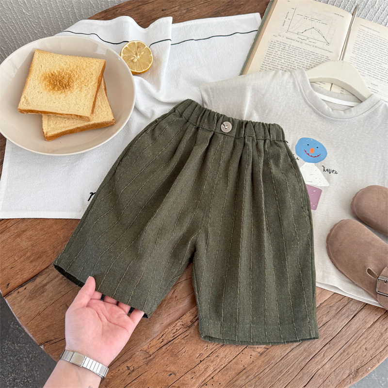 아동용 신상 여름 면 및 린넨 바지 신상 2025 남아 심플 솔리드 컬러 5부 바지 캐주얼 미드팬츠