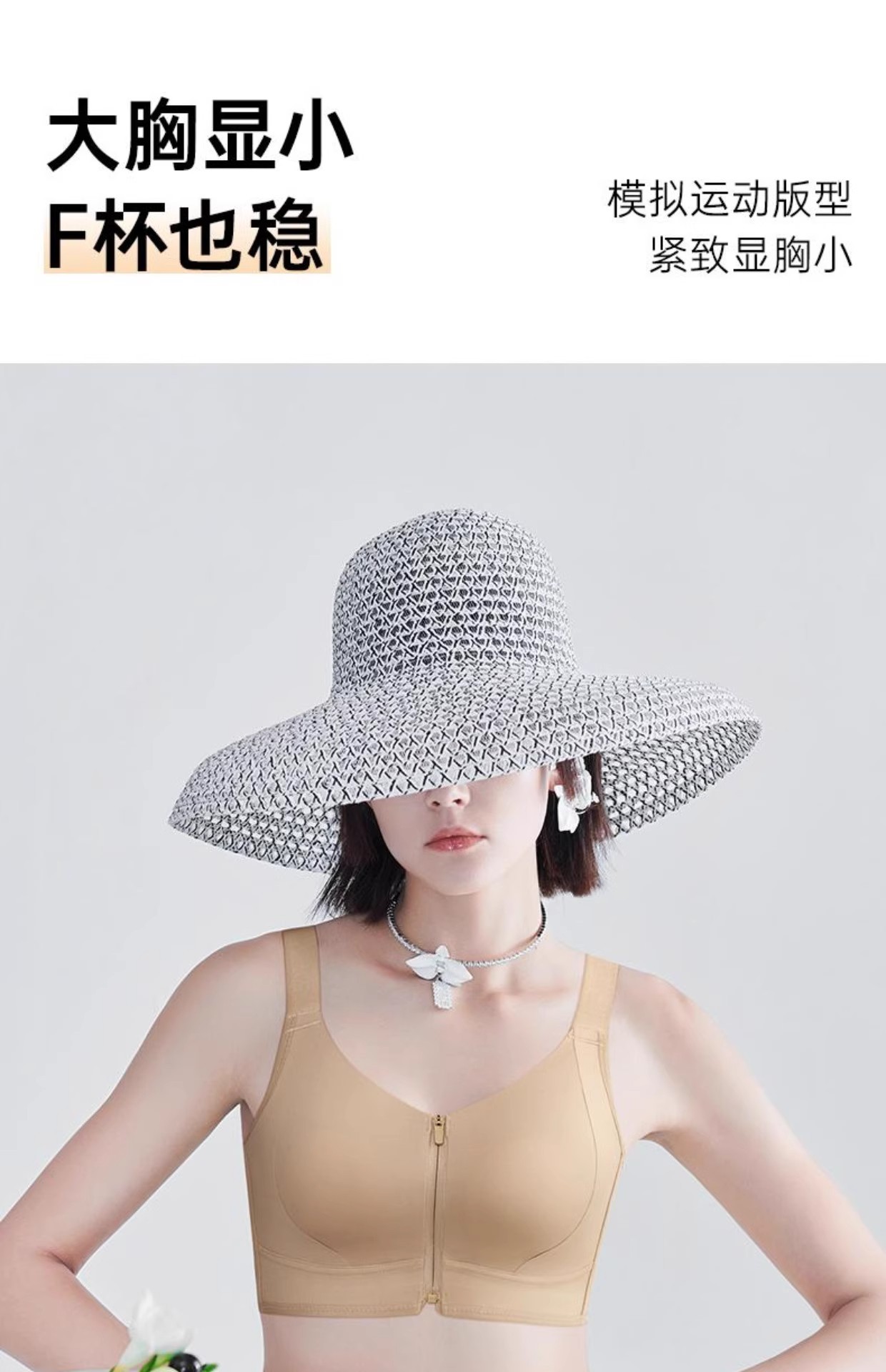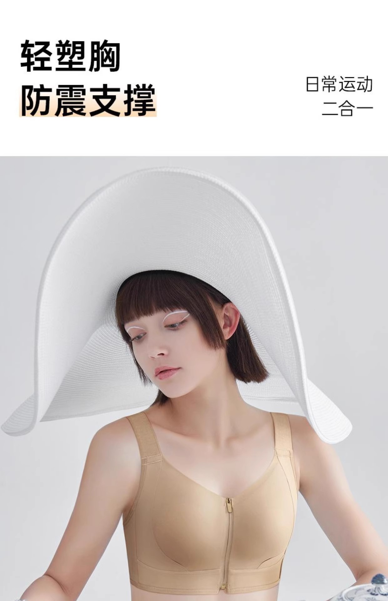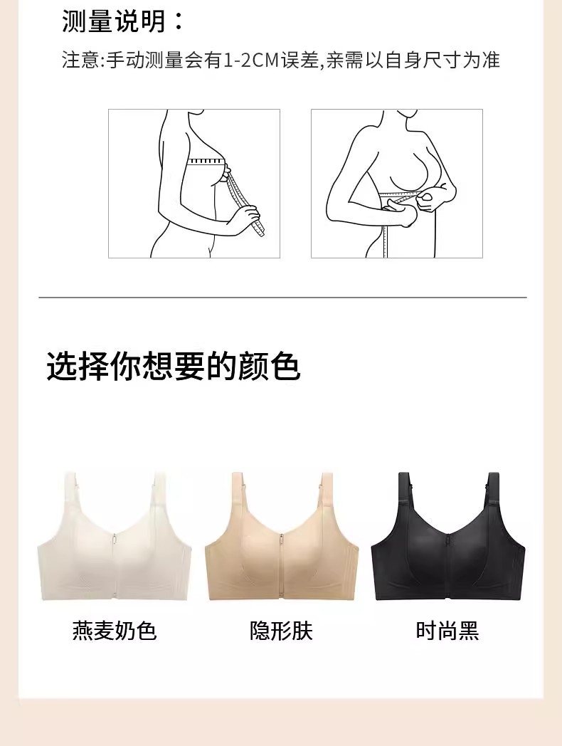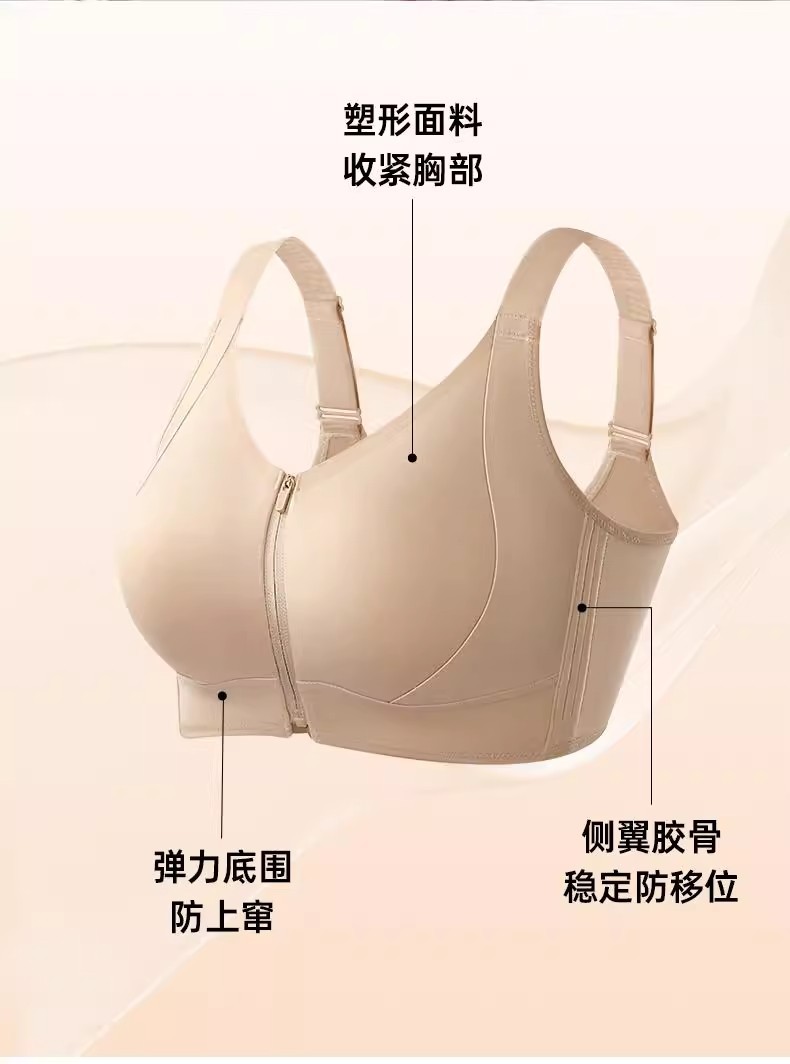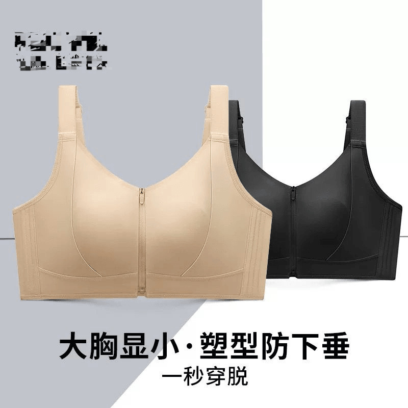 프론트 지퍼 착용 및 벗기 쉬운 플라스틱 가슴 스틸 링 프론트 버클 속옷 원활한 스포츠 충격 방지 큰 가슴 작은 브라 토끼 귀 컵 없음