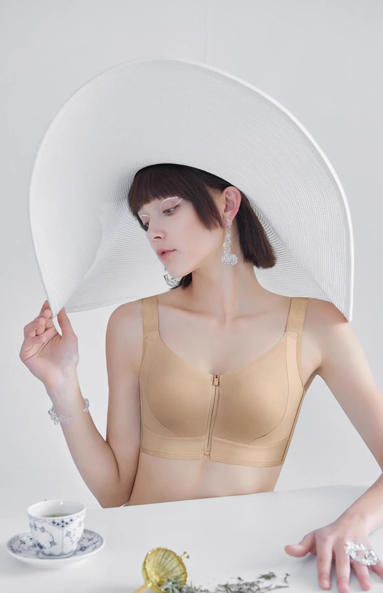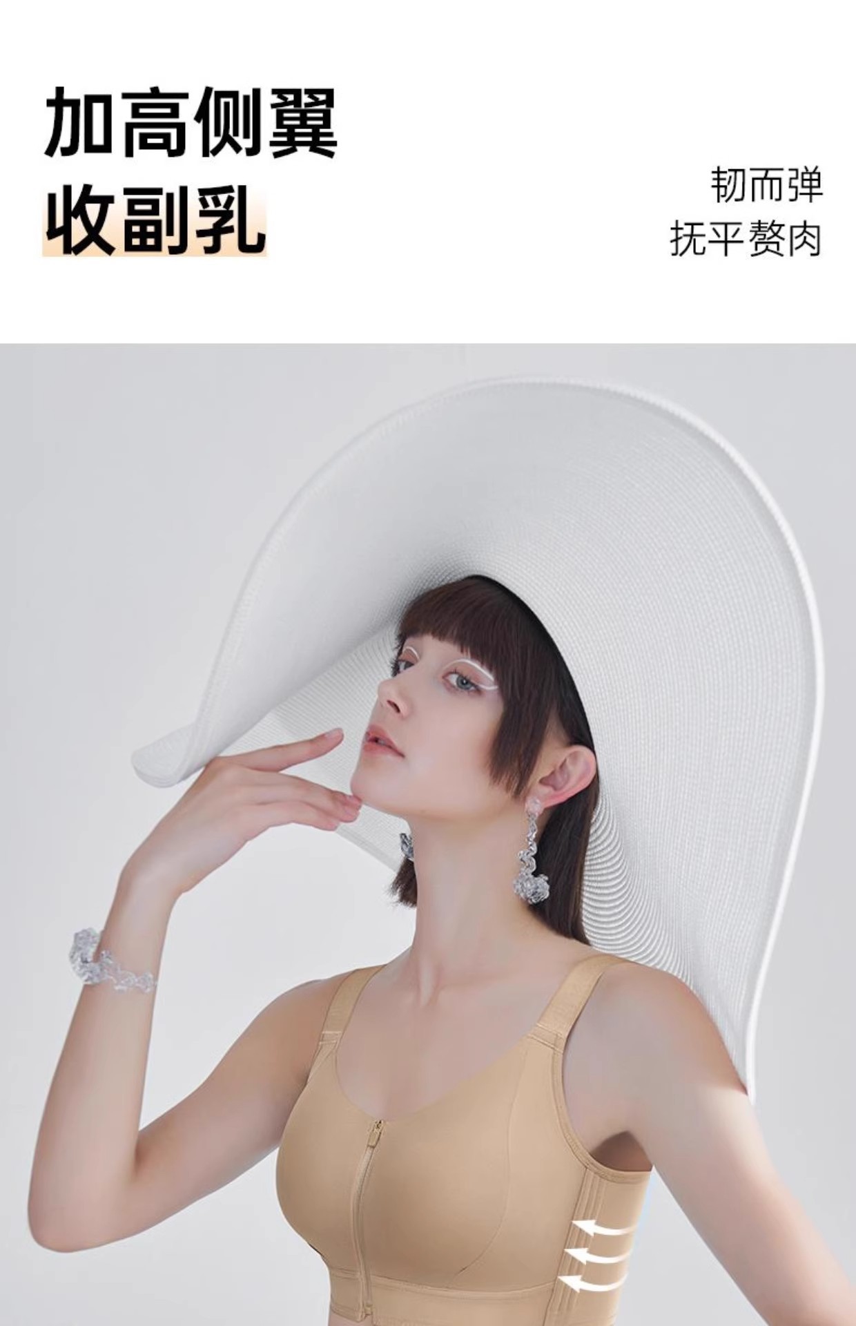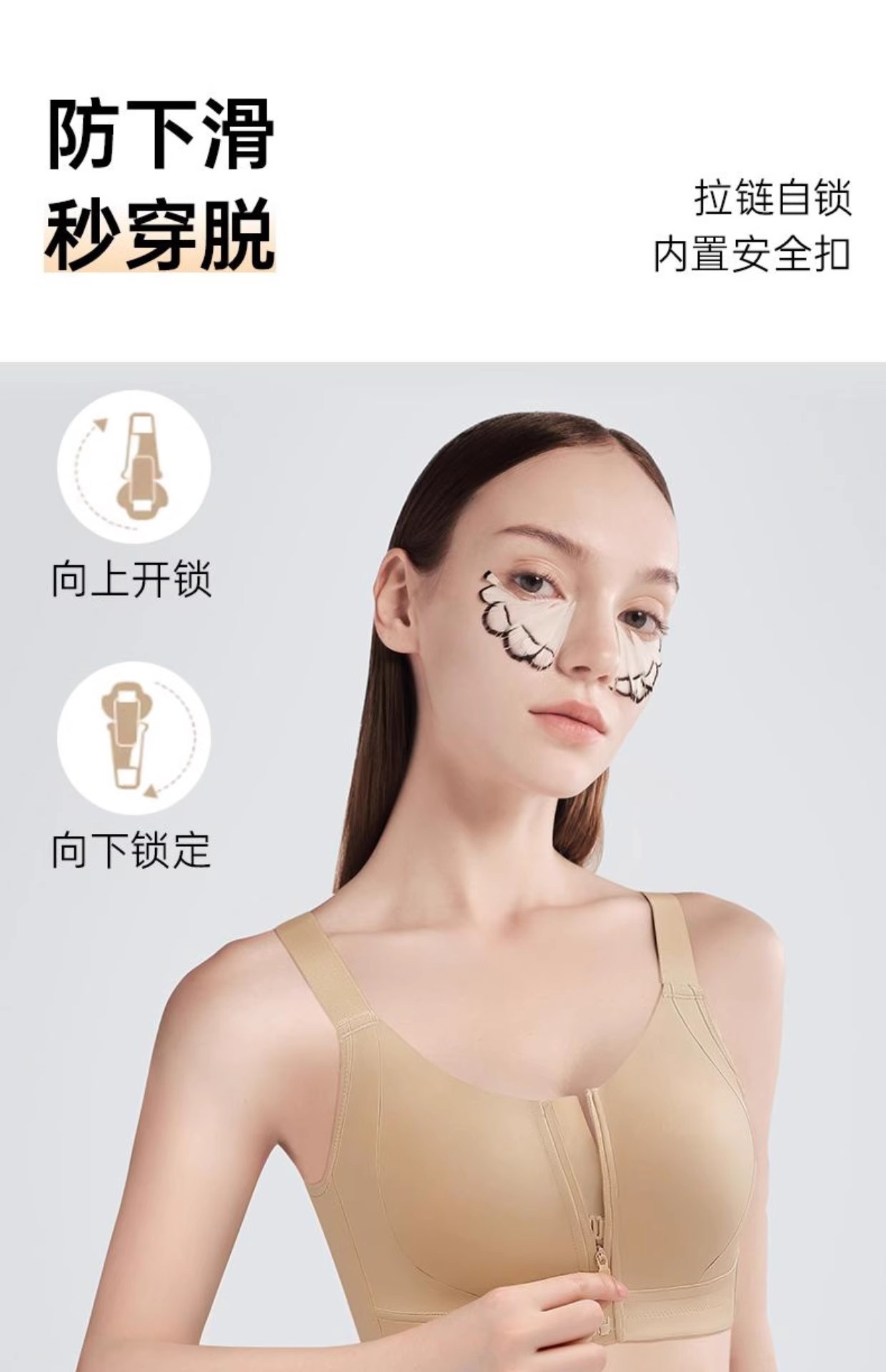 프론트 지퍼 착용 및 벗기 쉬운 플라스틱 가슴 스틸 링 프론트 버클 속옷 원활한 스포츠 충격 방지 큰 가슴 작은 브라 토끼 귀 컵 없음