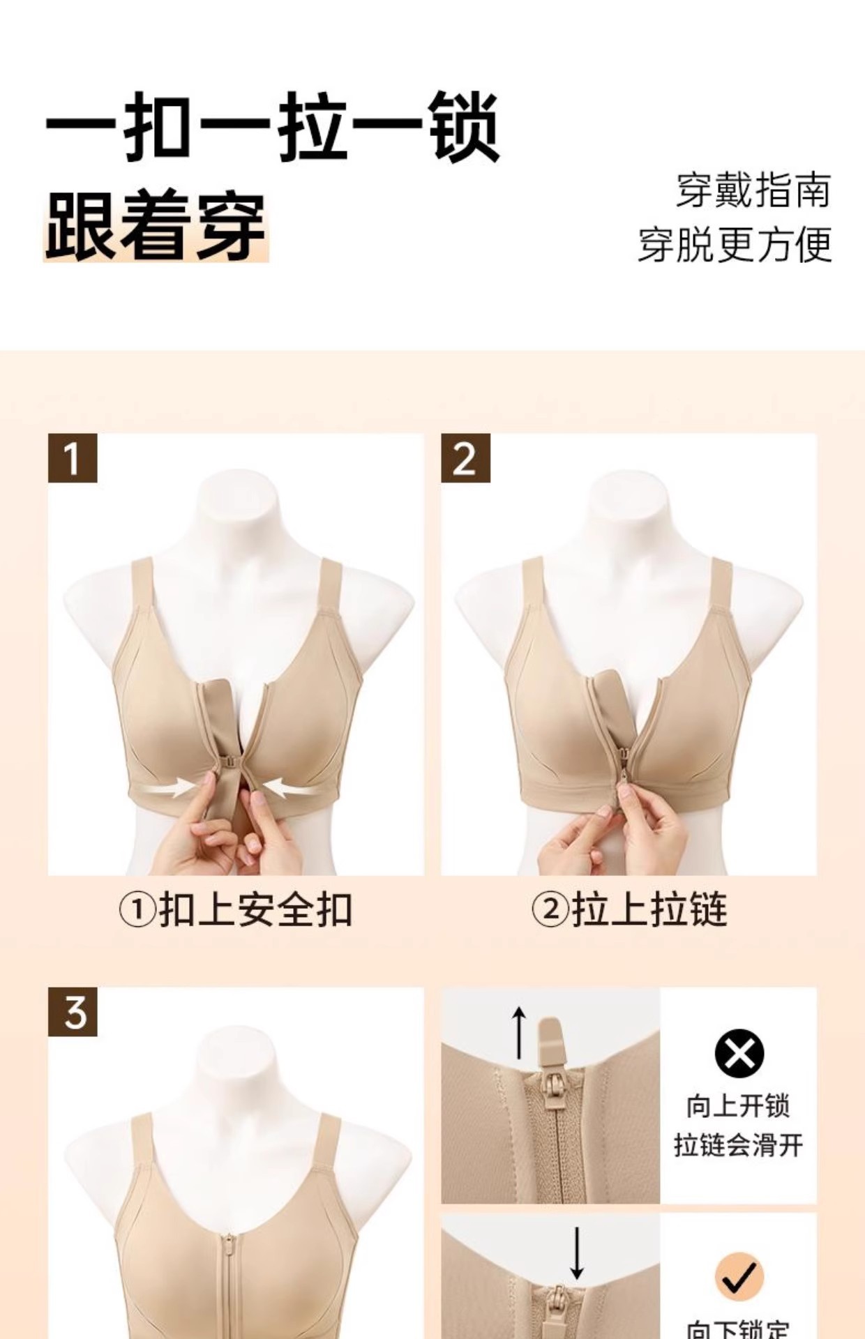 프론트 지퍼 착용 및 벗기 쉬운 플라스틱 가슴 스틸 링 프론트 버클 속옷 원활한 스포츠 충격 방지 큰 가슴 작은 브라 토끼 귀 컵 없음스토어 가기