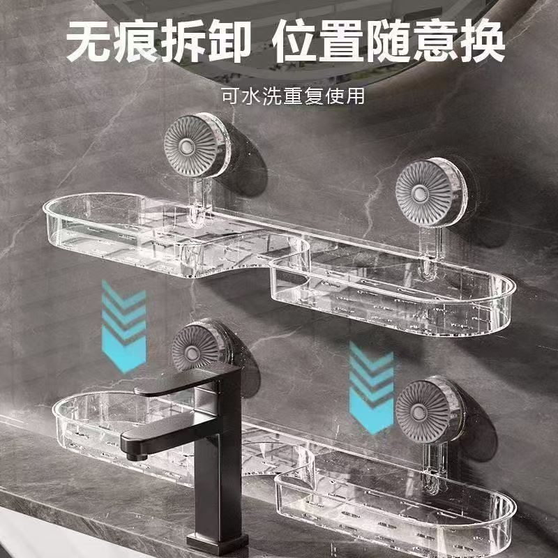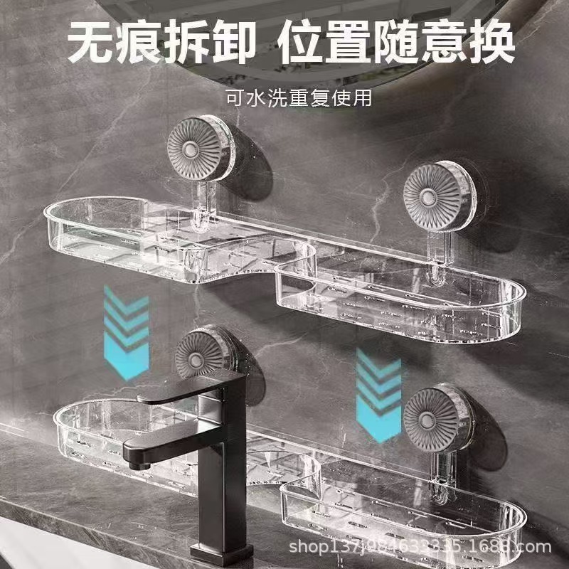 새로운 욕실 변기 수도꼭지 선반 흡입 컵 설치 없음 세면 용품 및 화장품 보관
