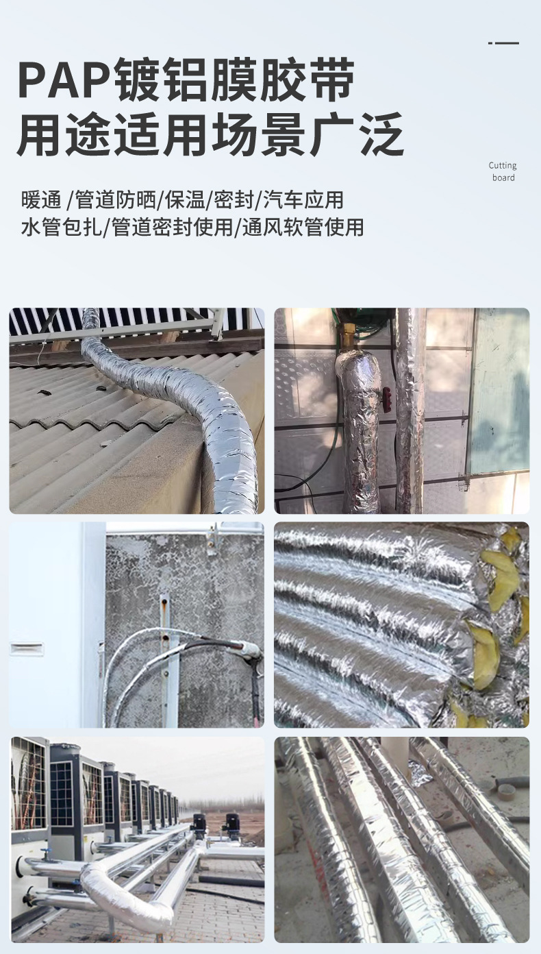 PAP 알루미늄 도금 필름 태양광 파이프라인 방수, 자외선 차단 및 노화 방지 실버 미러 반사 파이프라인 테이프스토어 가기