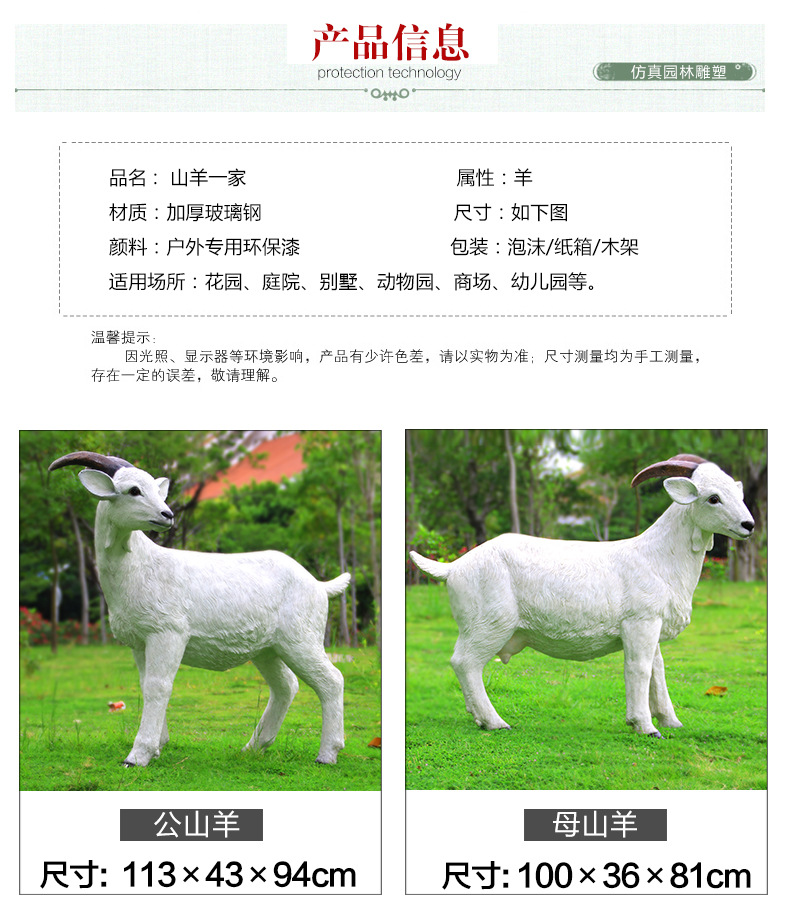 새로운 야외 유리 섬유 강화 플라스틱 시뮬레이션 염소 가짜 동물 모델 공원 풍경 초원 양 공예 장식 장식품스토어 가기