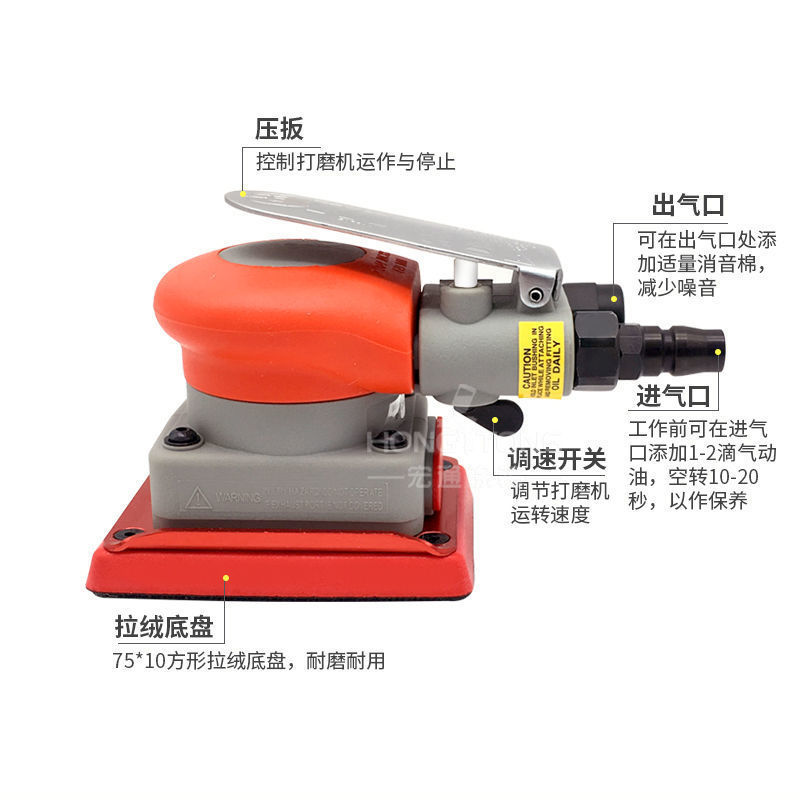 건식 연삭기 소형 사각 헤드 공압 연삭기 자동차 페인트 연마 건식 연삭 먼지 제거 모카 진동 사포 기계