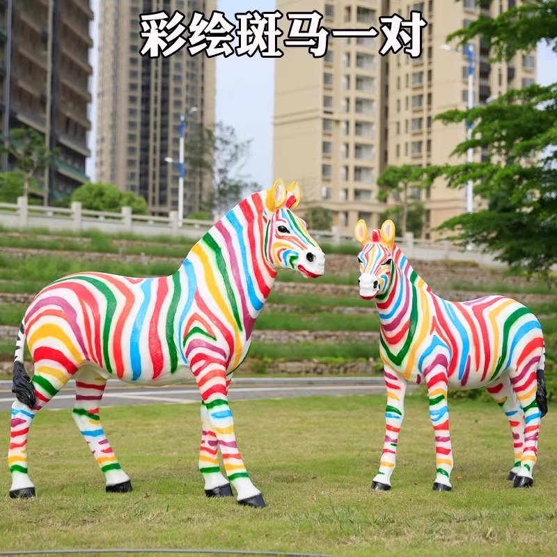 시뮬레이션 얼룩말 장식품 동물 정원 풍경 잔디 모델 빌라 안뜰 야외 유치원 유리 강철 조각