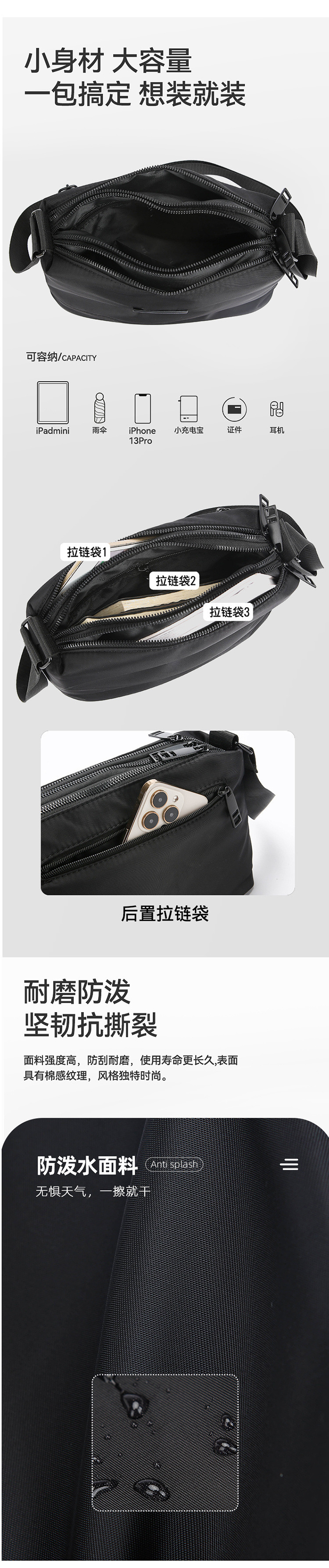 2024 새로운 유니섹스 패션 어깨 가방 방수 옥스포드 헝겊 멀티 구획 휴대용 핸드백
