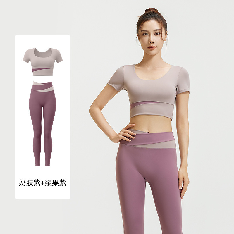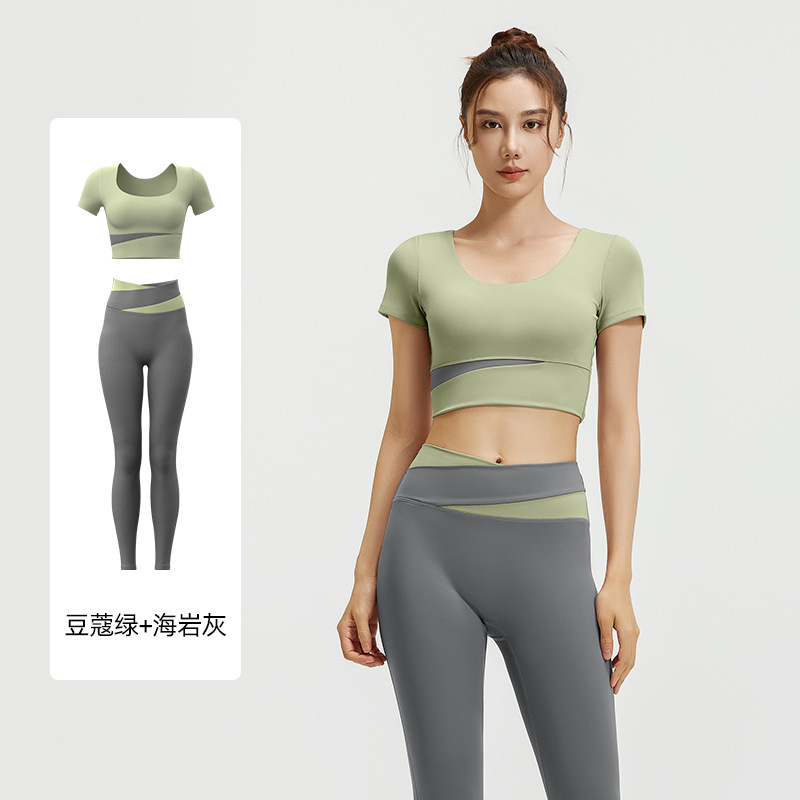 컬러 블록 높은 탄성 요가 세트 여름 여성의 원활한 슬리밍 피트니스 세트 원활한 스포츠 꽉 옷 여성