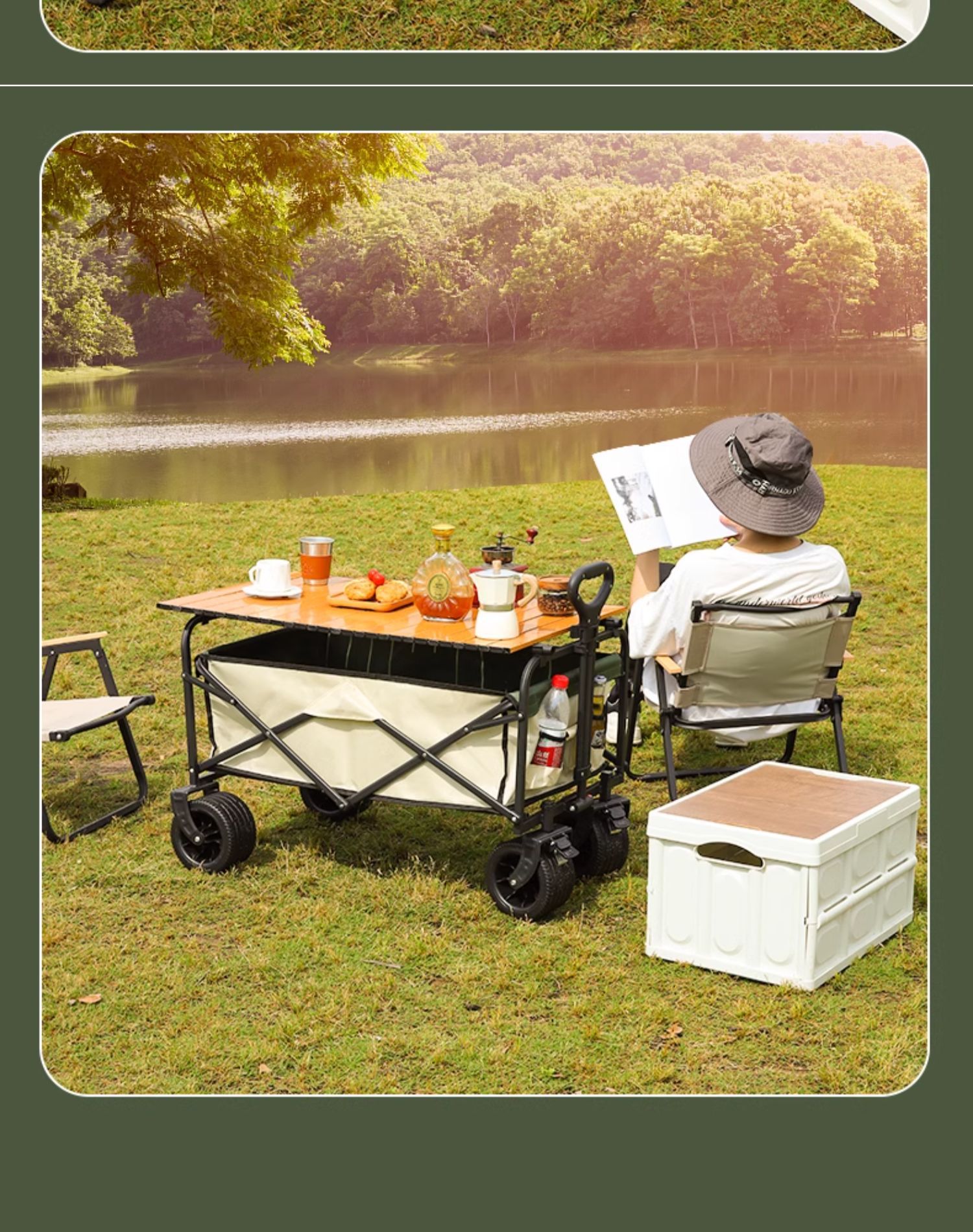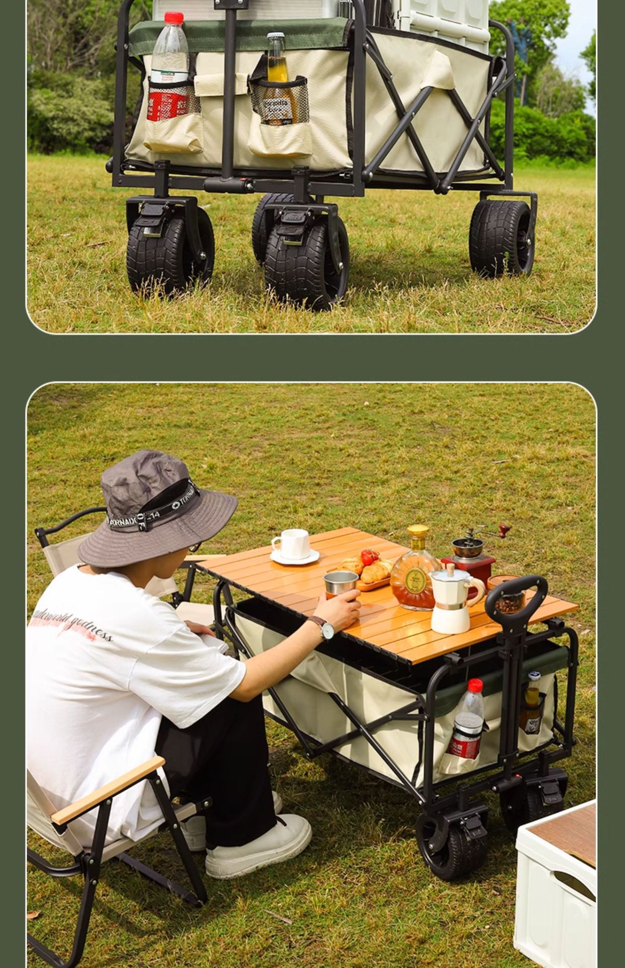 • 캠프카 대형 후방 플립 탱크 휠 카키 + 테이블