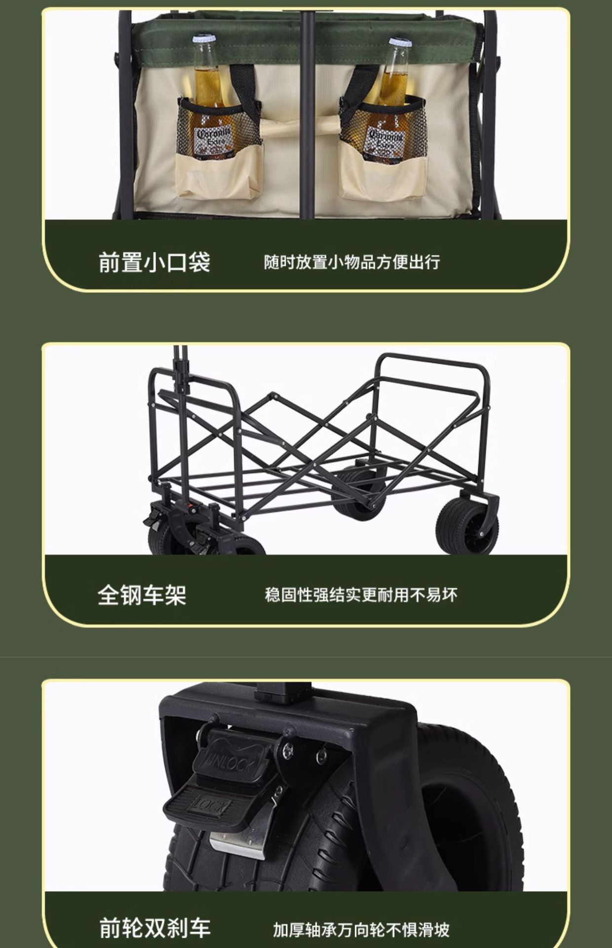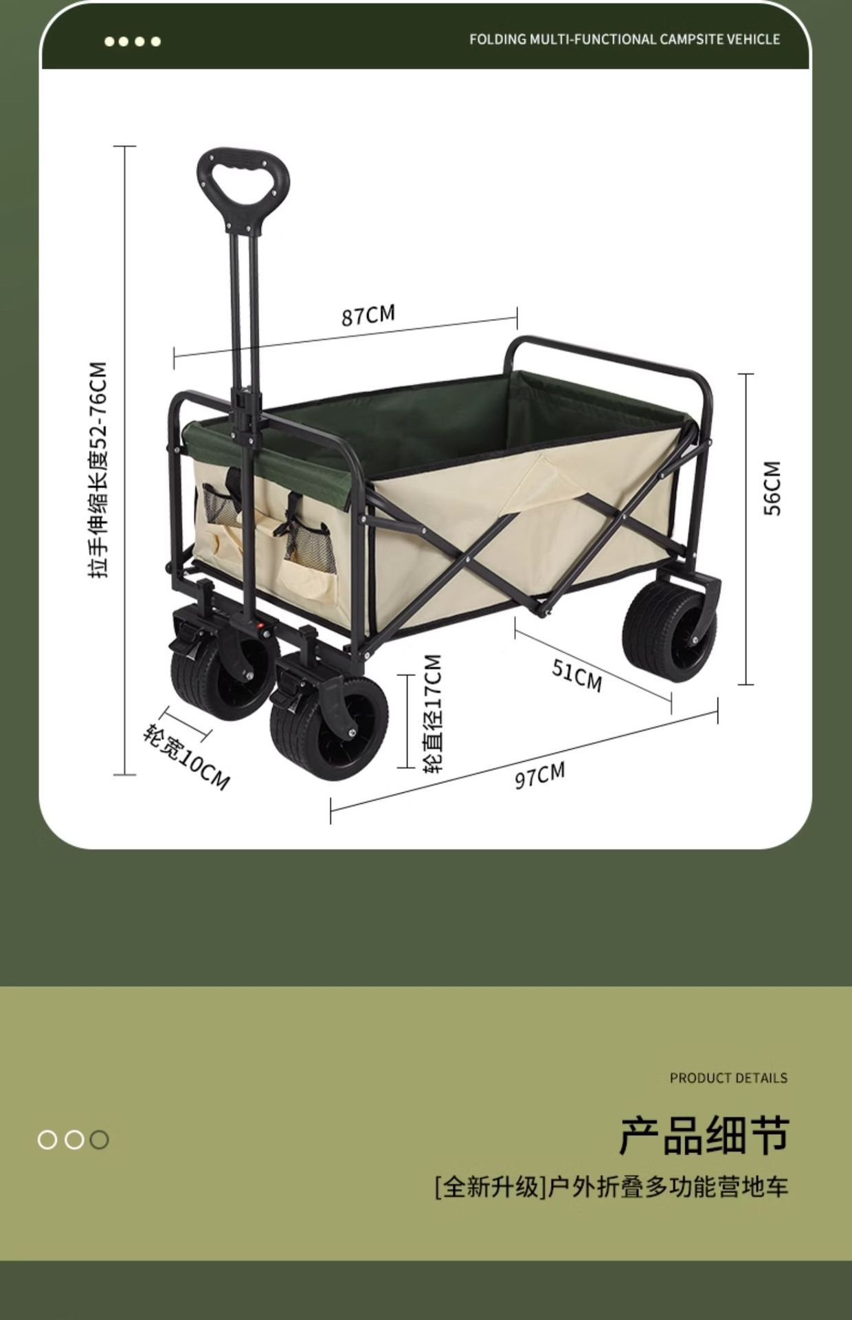 2024 캠핑카 접이식 야외 손으로 당기는 피크닉 카트 캠프 트레일러 화물 트롤리 캠핑카스토어 가기