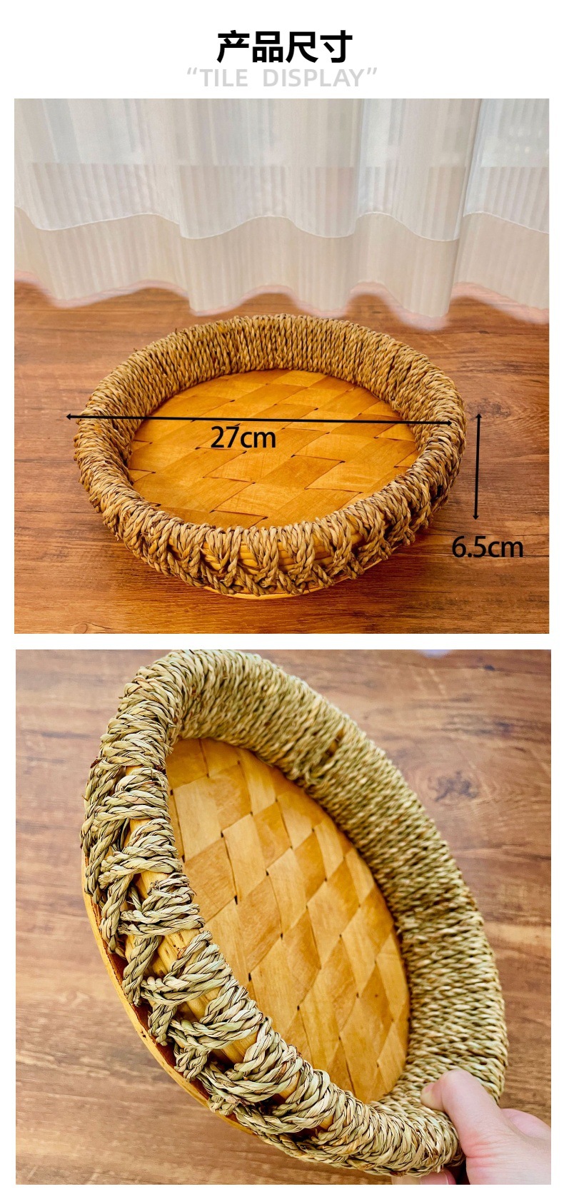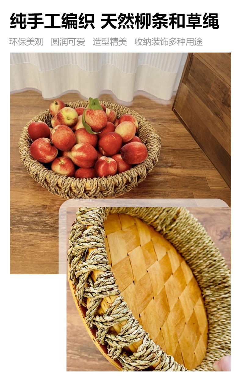 수제 밀짚 트레이, 버드나무 과일 바구니, 수납 바구니, 데스크탑 스낵, 말린 과일 바구니, 잡화 수납 바구니