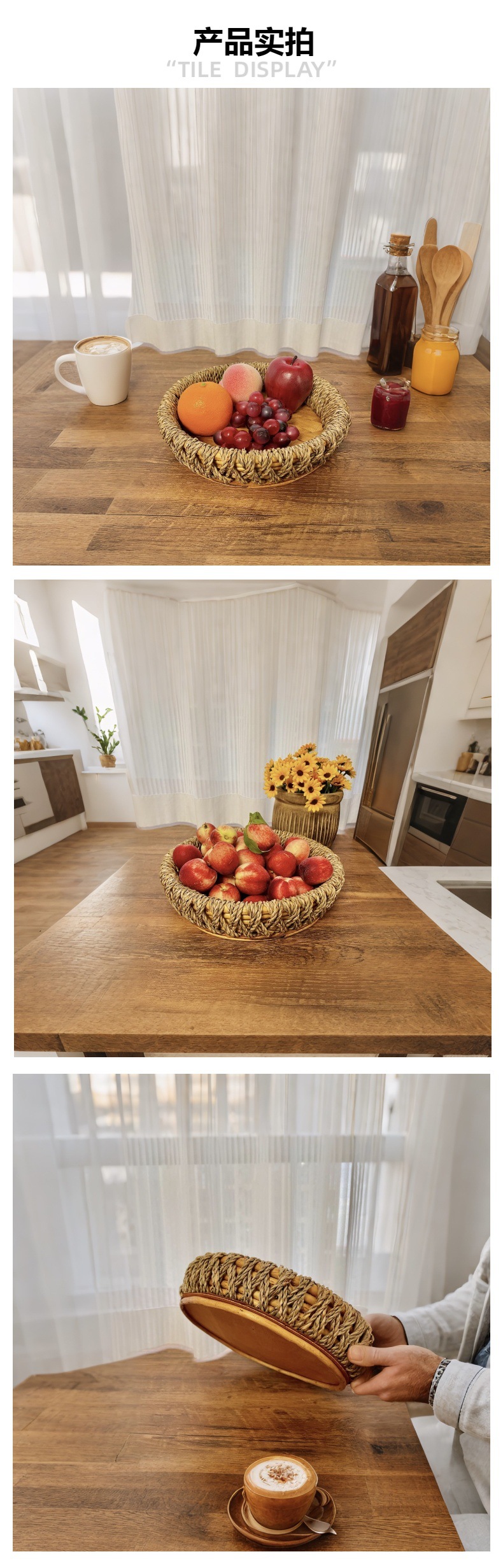 수제 밀짚 트레이, 버드나무 과일 바구니, 수납 바구니, 데스크탑 스낵, 말린 과일 바구니, 잡화 수납 바구니스토어 가기